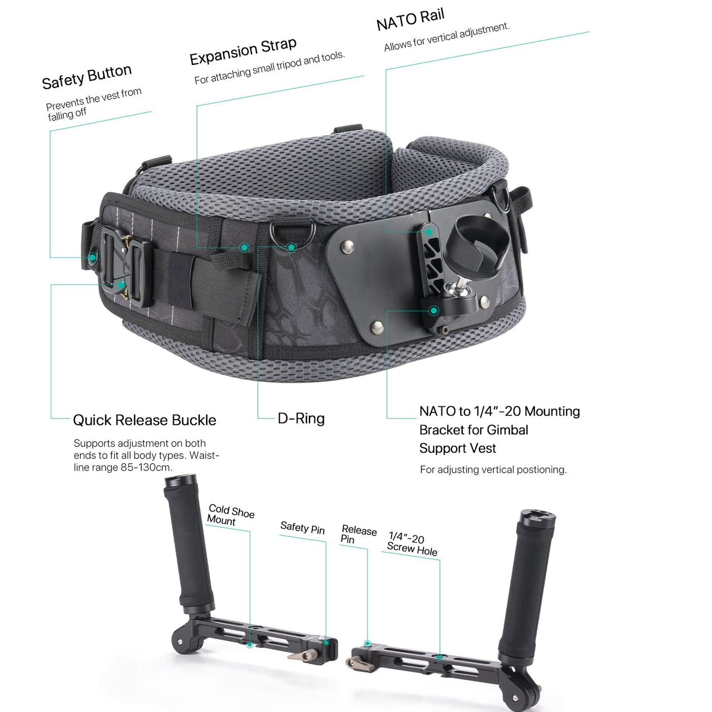 The Tilta Lightweight Gimbal Support System Is Specifically Designed To Support Smaller Handheld Gimbals For Longer Periods Of Time. The Waist Vest Features A Height Adjustable Adapter That Allows You To Mount The Dji Rs2, Rsc2, Rs3 Or Rs3 Pro Via The Bottom Of The Battery Handle Or The Extended Grip Tripod. You Can Then Attach The Included Dual Handle Brackets To Your Gimbal And Use The Shoulder Straps And Support Straps To Attach The Handles To The Vest. This Creates Multiple Points Of Contact, Allowing You To Operate More Comfortably And Steadily While Allowing You To Go Hands Free If Needed. (User Discretion Is Advised) The Handles Themselves Can Be Rotated In Various Positions In Order To Accommodate Comfortable Operation For Many Different Configurations. The Brackets That Connect The Handles To The Gimbal Via Nato, Include Mounting Points Such As 1/4'-20 And Cold Shoe In Order To Accommodate Additional Accessories.