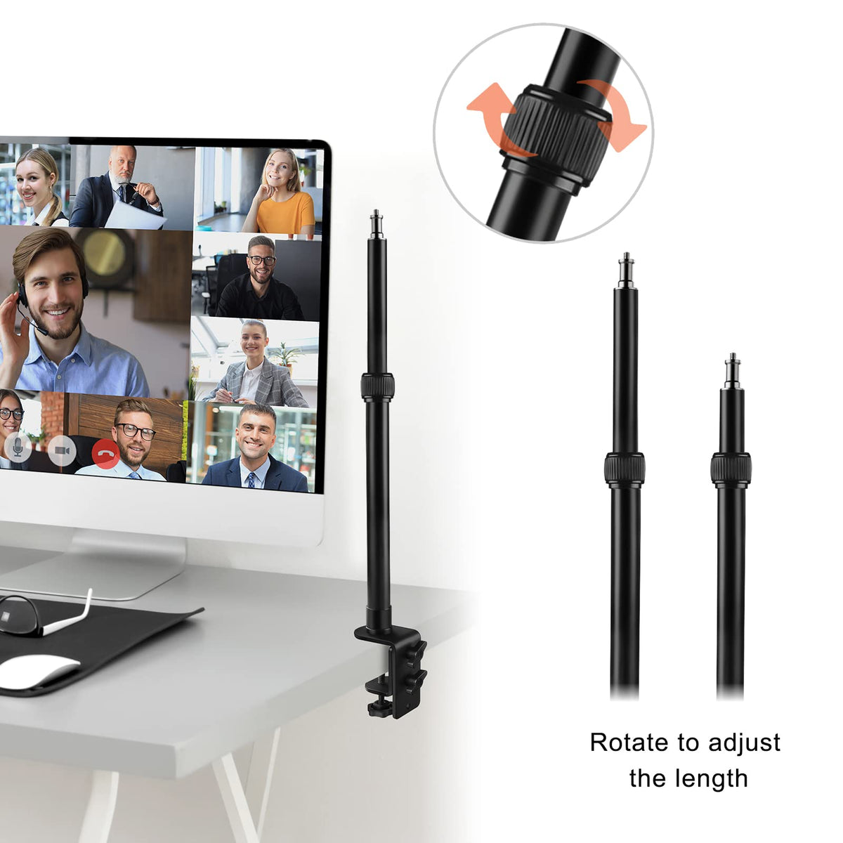 Tinpops Camera Desk Mount Stand, 12.4 20.8'' Adjustable Desktop C Clamp Mounting Stand, Aluminum Tabletop Light Stand With 1/4''