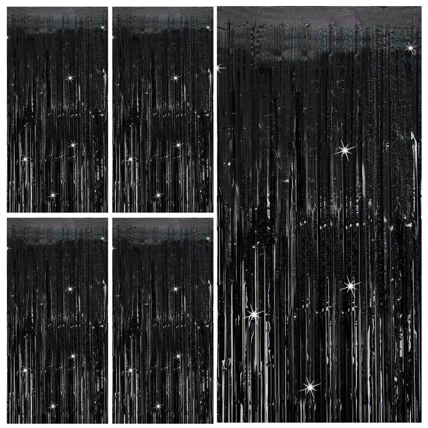Tinsel Curtain Party Backdrop Black Birthday Party Decorations 5 Packs Glitter Foil Fringe Curtain Party Decor Streamers Photo Booth For Birthday Christmas Wedding Halloween Graduation Decorations