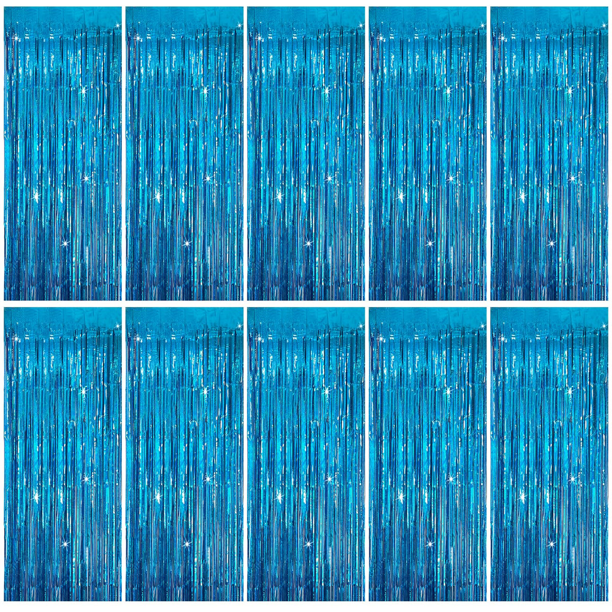 Tinsel Curtain Party Backdrop Blue Birthday Party Decorations 10 Packs Glitter Foil Fringe Curtain Party Decor Streamers Photo Booth For Birthday Christmas Wedding Halloween Graduation Decorations