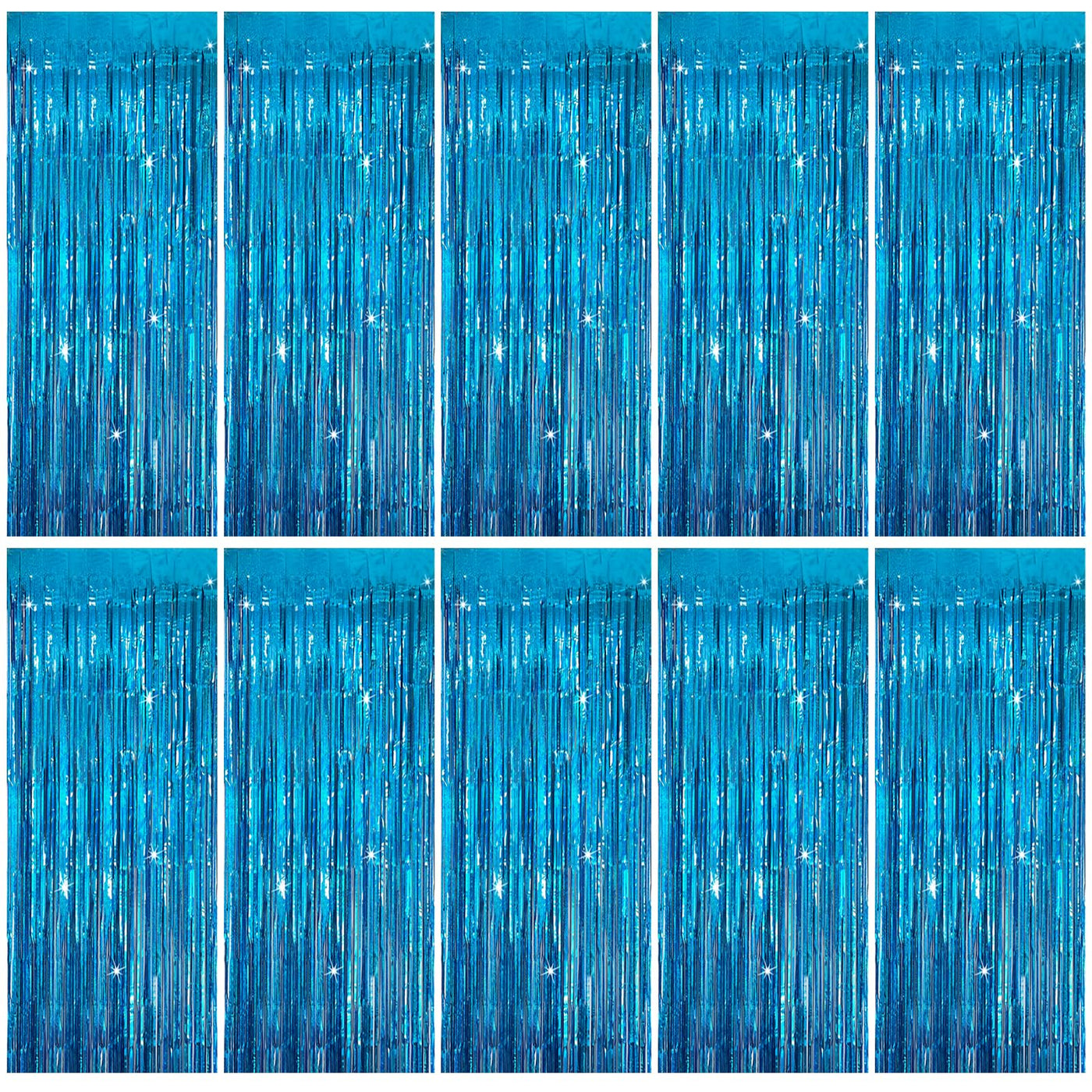 Tinsel Curtain Party Backdrop Blue Birthday Party Decorations 10 Packs Glitter Foil Fringe Curtain Party Decor Streamers Photo B