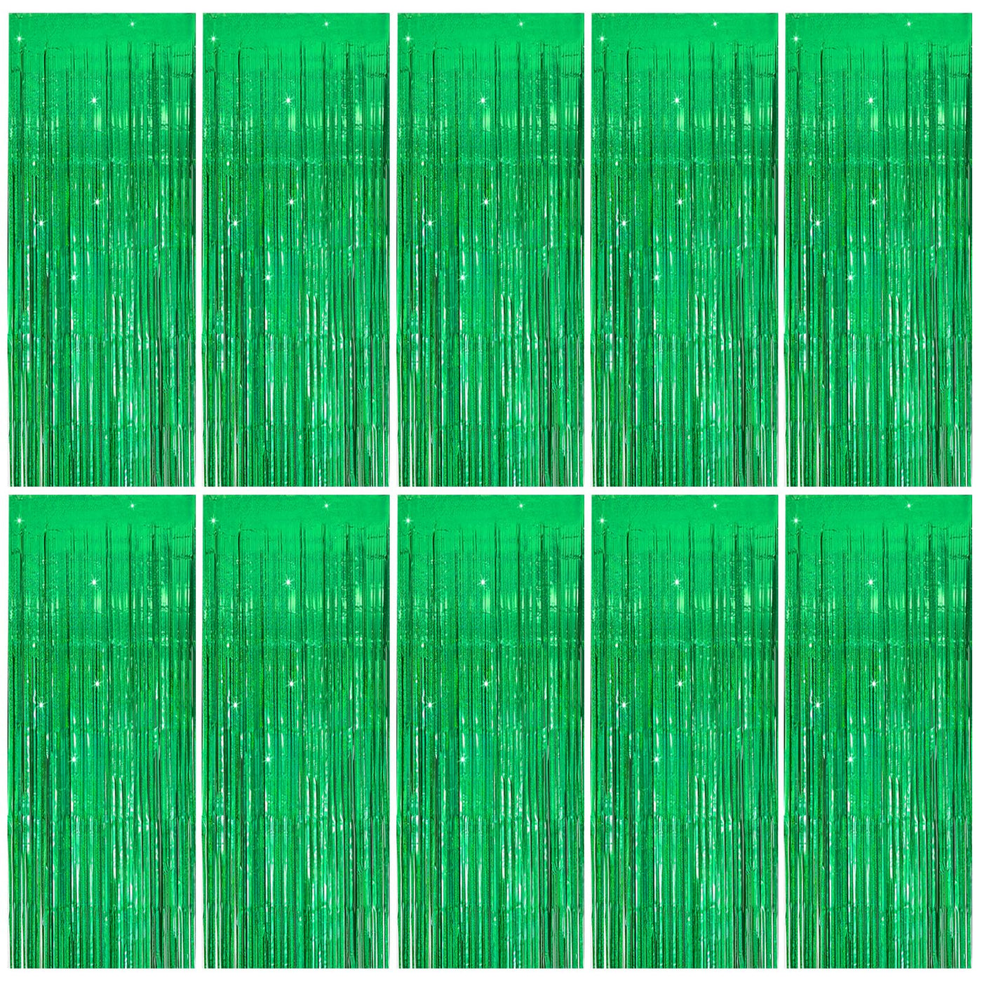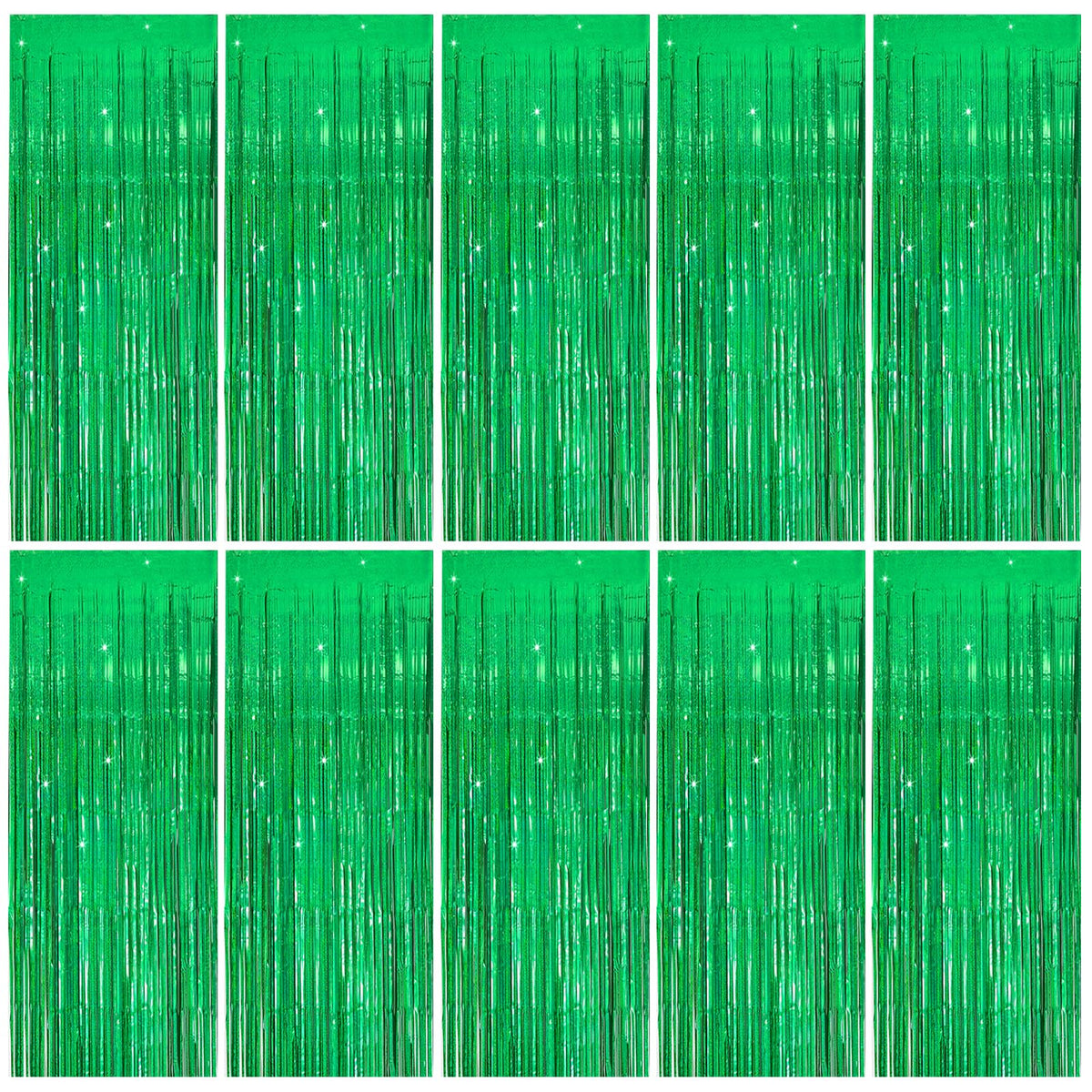 Tinsel Curtain Party Backdrop Green Birthday Party Decorations 10 Packs Glitter Foil Fringe Curtain Party Decor Streamers Photo Booth For Birthday Christmas Wedding Halloween Graduation Decorations