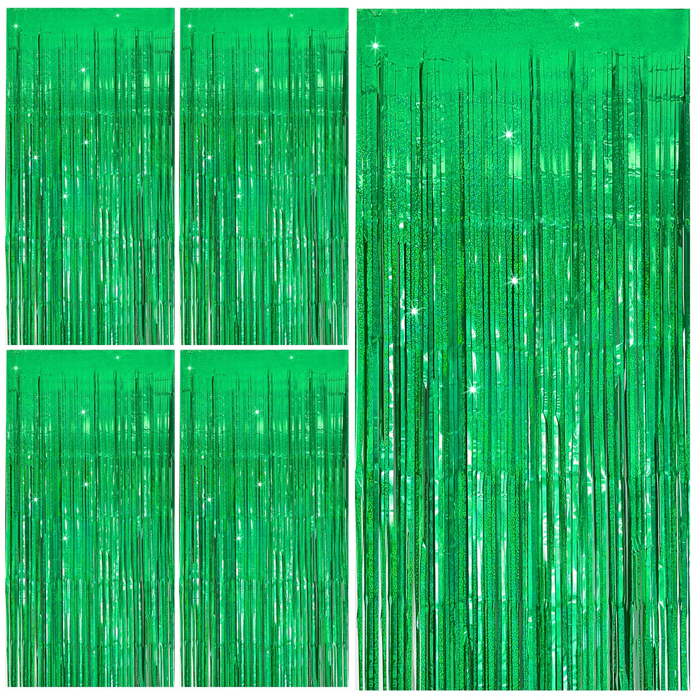 Tinsel Curtain Party Backdrop Green Birthday Party Decorations 5 Packs Glitter Foil Fringe Curtain Party Decor Streamers Photo Booth For Birthday Christmas Wedding Halloween Graduation Decorations