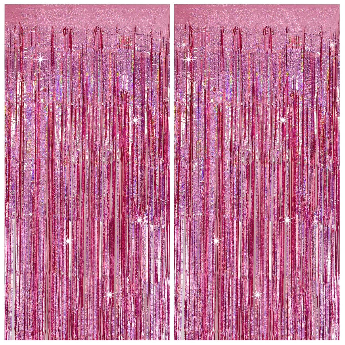 Tinsel Curtain Party Backdrop Pink Birthday Party Decorations 2 Packs Glitter Foil Fringe Curtain Party Decor Streamers Photo Booth For Birthday Christmas Wedding Halloween Graduation Decorations
