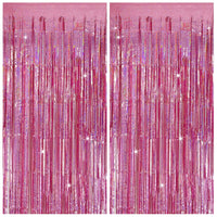 Tinsel Curtain Party Backdrop Pink Birthday Party Decorations 2 Packs Glitter Foil Fringe Curtain Party Decor Streamers Photo Bo