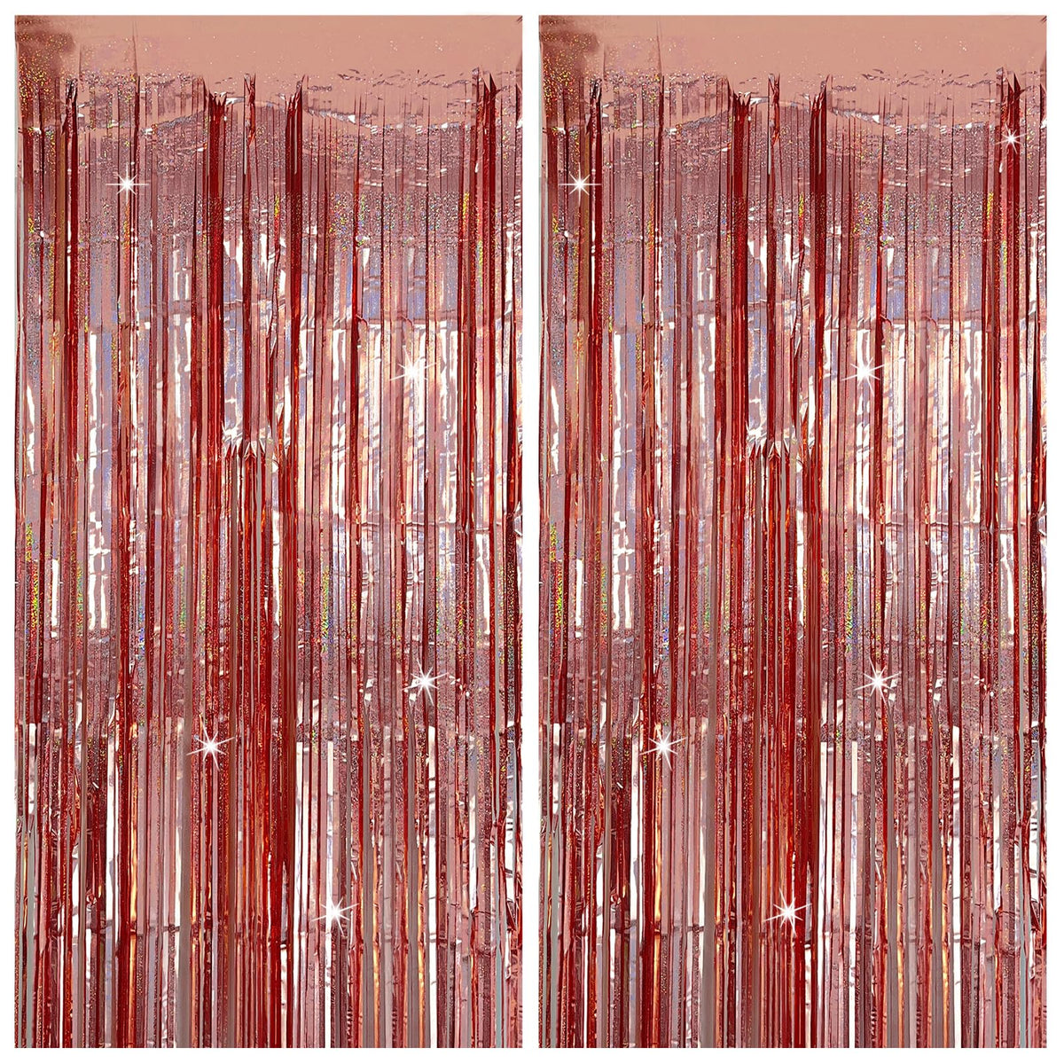 Tinsel Curtain Party Backdrop Rose Gold Birthday Party Decorations 2 Packs Glitter Foil Fringe Curtain Party Decor Streamers Photo Booth For Birthday Christmas Wedding Halloween Graduation Decorations