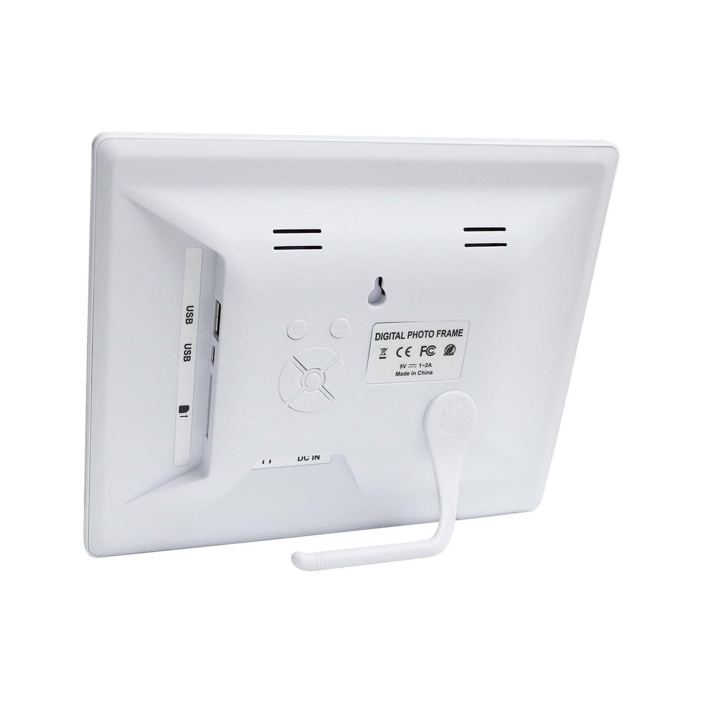 Ips Full Viewing Angles: Larger Display 1024*768 Resolution Hd Screen Redefines Your Viewing Experience With Higher Image Quality. Full Viewing Angles From All Sides Your Pictures Are Clean And Clear By Viewing From Different Anglesbackground Music With Pictures With Sound No Longer Limits To Video Playing, You Can Save Your Favorite Songs As Background Music For Your Favorite Photos. Additionally, The Built-In Stereo Speaker Guarantees You Crisp Sound Clarity.Auto-Rotate Digital Photo Frame Will Adjust Your Photos Automatically The Orientation Of Your Photosdigital Photo Frame Features : Support The Photo Format: Jpeg / Bmp / Tiff / Png. Support The Audio Format: Mp3/ Aac/M4A/Wav/Wma/Ape. Support Audio Format: Mp3/ Wav/ Mwa/ Ape/ Flac/ Ogg/ Aac/ Amr/ Aiff/ Mpc/ Wmv/ Asf. Input Voltage: 100 - 240 V 50 / 60Hz Output Voltage: 5V /1.5A Contrast: 1-100 Brightness: 1-100 Grayscale: 1-100 Auto Play: Picture/Video/Mp3 Adjustable Photo Ratio: Full Screen/ Original Size/ Scal Time Setting: Year/Moth/Day/Hour/Min Support Language: English/Spanish/Italian/Germany/Chinese. Package Included 1 9 Inch Digital Photo Frame 1 Remote Control (With Battery) 1 Bracket 1 Power Adapter 1 Manua