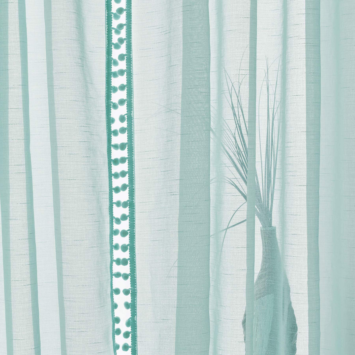 Treatmentex Aqua Blue Pom Pom Sheer Curtains For Bedroom Nursery Room 63Inches Long Linen Textured Window Sheer Drapes 52'' W, 1