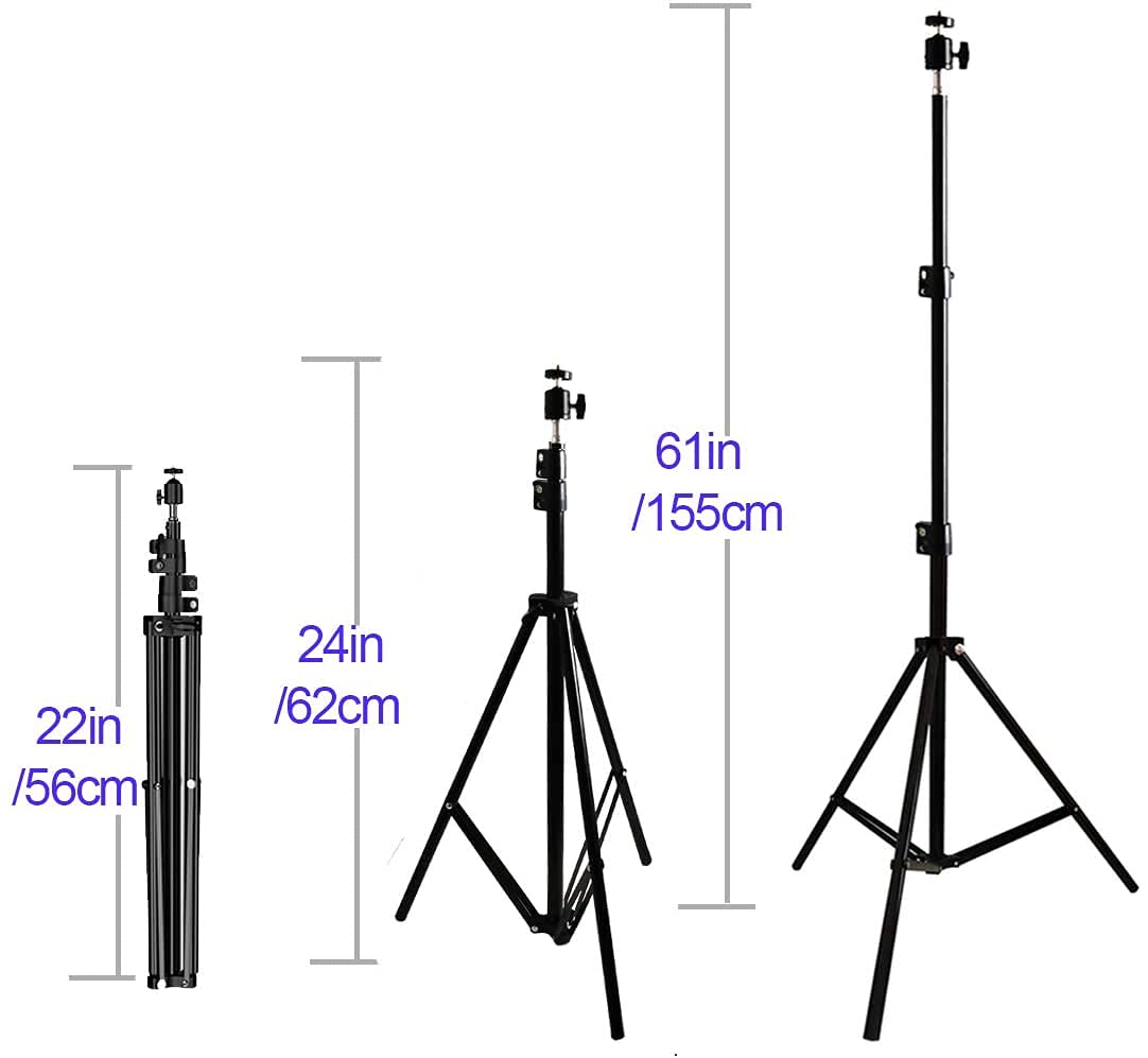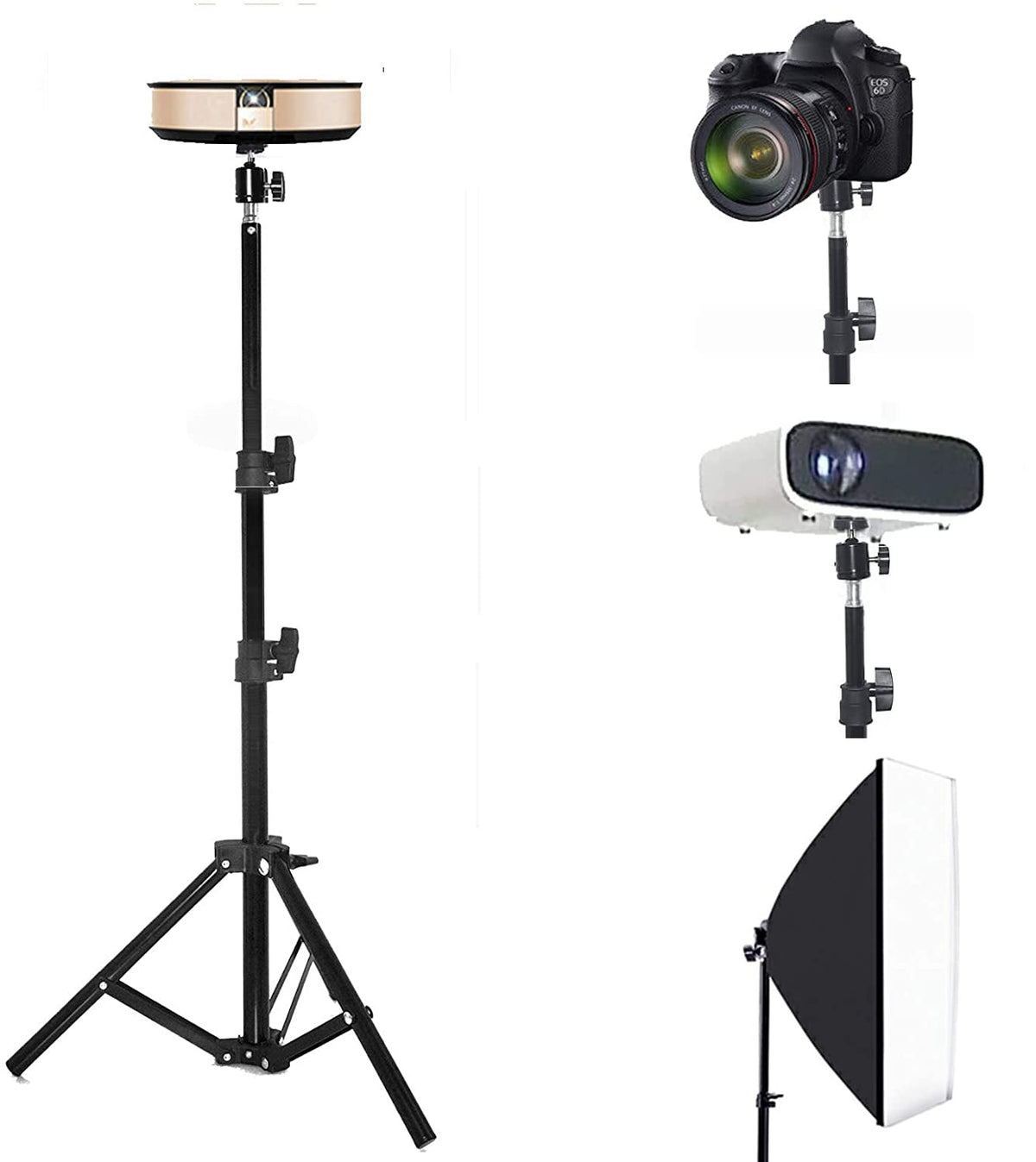 Adjustable Height: The Height Of The Tripod Is Adjustable From 20-61 Inches (56-155Cm). Three Sturdy Legs Are Inclined Outwards To Maximize Stability And Can Be Adjusted To The Height You Need. 360 Rotatable Head: 360 Rotating Head To Help You Get The Ideal Angle. 1/4 Screws Can Fit Almost All Mini Projector, Dlp Projector, Digital Camera, Camcorder,Compact Cameras, Webcams,Etc Portable Tripod Projector Stand: It Can Be Folded Into A Portable Size And Weighs Only 1.5 Lbs. It Is Very Suitable For Offices, Classrooms, Presentations, Travel, Live Broadcasts, Commercial Exhibitions. Easy To Assemble And Set Up! Bearing Capacity : The Load Capacity Of The Tripod Stand With 360 Rotatable Ball Head Does Not Exceed 4 Pounds, And The Tripod Mount Is Mainly Used For Light Equipment. Not Recommended For Large And Heavy Projection Equipment. Tripod Chassis Structure: In Order To Consider The Safety Of Media Equipment. The Rugged Tripod Structure With A Load Capacity Of 7 Pounds Is Easy To Install And Portable. Technical Specs: Material: Pet Knob And Steel Tubes Color: Black Safety Load: 7 Lbs/3Kg Length: 20-61Inch/56-155Cm Head Rotation: 360 Package Contents Tripod Standx1 Tripod Mini Ball Head