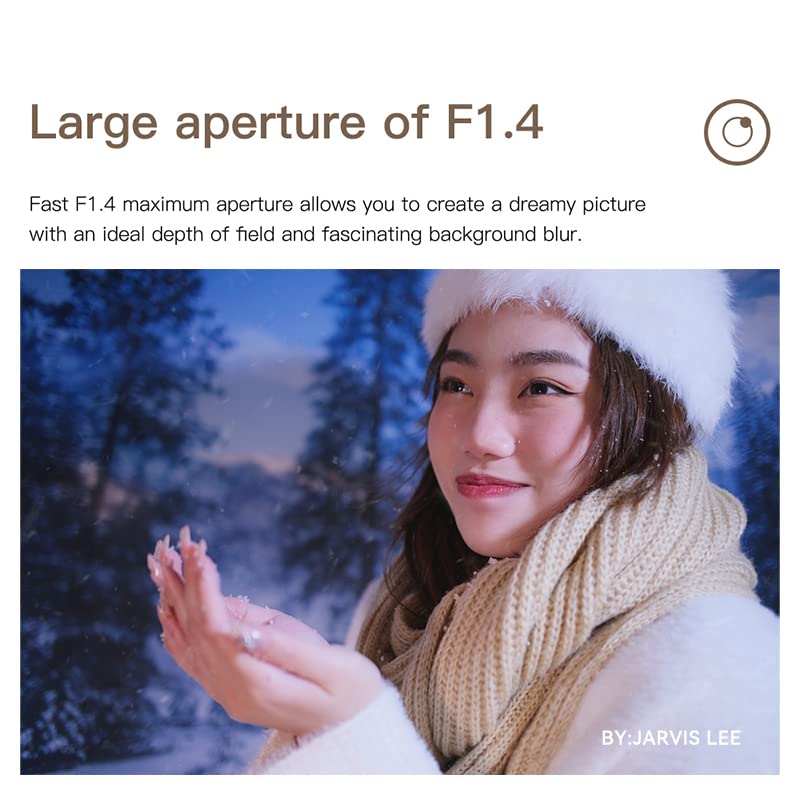 F1.4 Large Aperture: Experience The Beauty Of Low-Light Photography With The Impressive F1.4 Aperture. Capture Stunning Images In Dimly Lit Environments Like Cozy Cafes Or During Golden Hour Sunsets Without The Need To Increase Iso. The 10-Blade Aperture Design Produces Exquisite Background Bokeh, Beautifully Isolating Your Subjects And Delivering A Professional Finish To Your Photos.