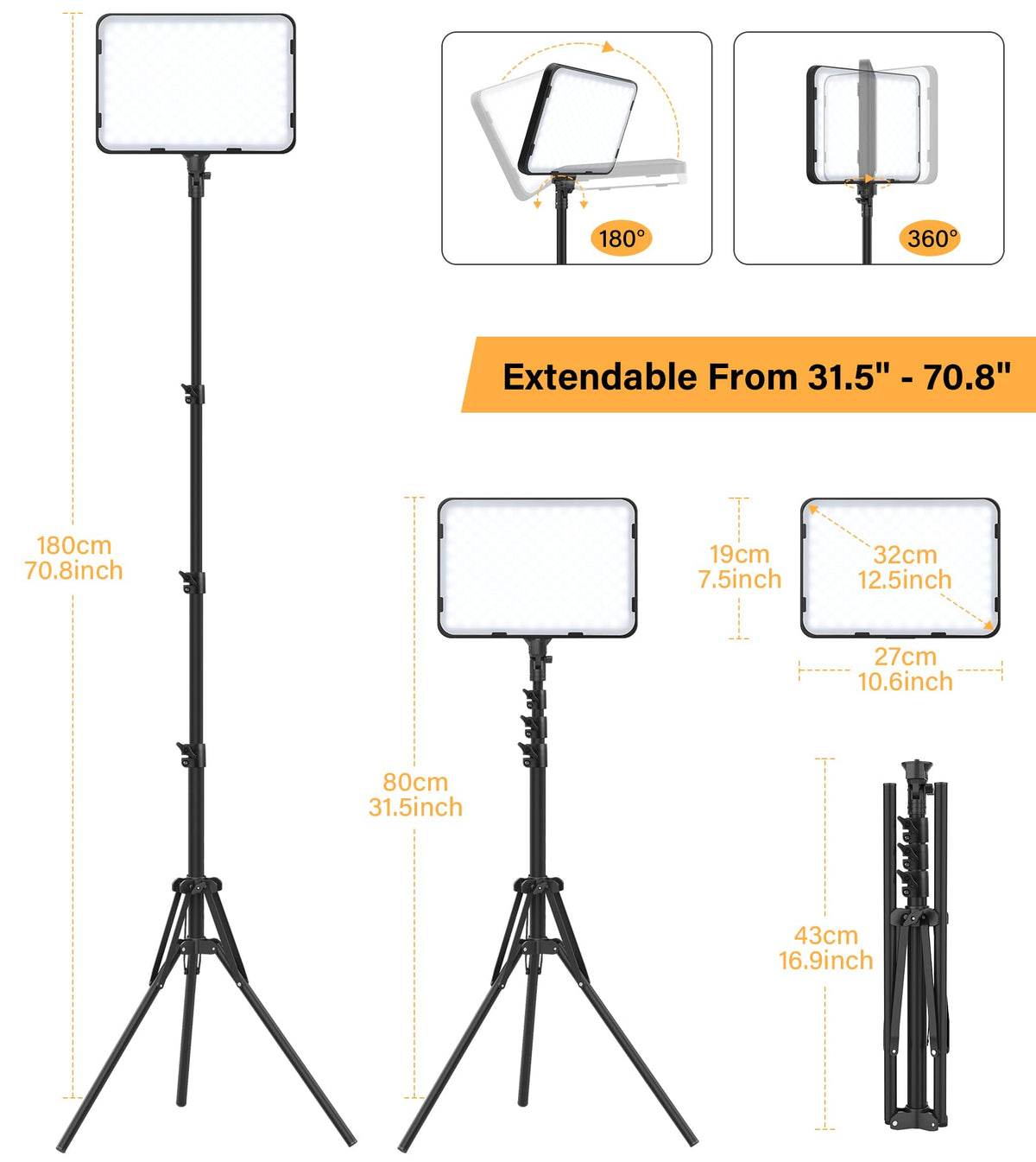 The 352 High Quality Led Beads In Each Light Panel Ensure Ample Light Distribution While Minimizing Unwanted Shadows. The Diffusers Work Well. The High Cri Of 97+ Guarantees Precise Color Rendering, Resulting In Professional-Looking Photos And Videos. | 12.5-Inch Diameter Square Light Panel Has 3 Color Modes (Warm, Neutral, Cool) And 10 Brightness Levels, Allowing You To Adjust The Lighting To Your Desired Level Of Brightness And Warmth. The Light Panels Have Long Cords With Controls For On/Off, Color Temp, And Brightness With Dc/Ac Power Adapter. | Tripod Stand Provide A Maximum Height Of 62.99 Inches With A 360