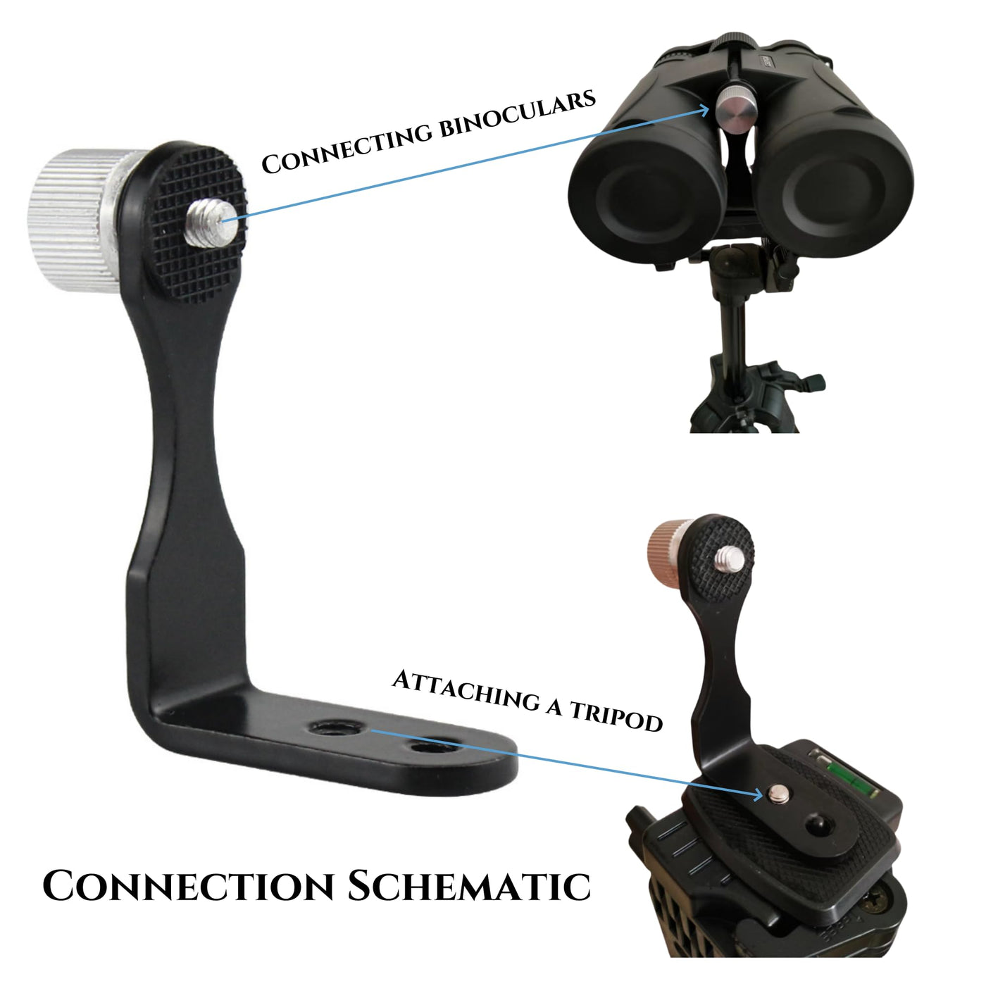 Tripod Adapters Allow You To Mount Binoculars, Monoculars To A Tripod, Monopod Or Window Frame. The Binoculars' 1/4'' Threads Come With The Appropriate Tripod Adapter, Socket Thumbwheel Bolts To Easily Tighten The Binoculars. Great For Outdoor Activities Such As Hiking, Wildlife Viewing, Bird Watching And Sporting Events. Made Of Sturdy 1/8'' Thick Steel With A Powder Coated Finish. This Sturdy L-Shaped Mounting Bracket Eliminates Image Jitter In High-Powered Binoculars And Allows You To Easily Attach Binoculars With A Front Tripod Screw Socket To Any Mount For Tightening Using A Standard Tripod. Rugged And Adaptable The Top Attachment Screw Is Only 1.063 Inches, Safe And Won'T Poke You In The Chest. Fits All Tripod Mountable Binoculars. 8X32 8X40 8X42 10X50 15X60 15X70 20X60 20X80 Binoculars And More! Binocular Tripod Adapter, Sturdy, Easy To Carry, Quick To Connect Or Disconnect. It Is A Great Spare Part As It Has A Unique Design That Will Fit All Binoculars. This Tripod Adapter Comes With Standard 1/4-20 Inch Threads And Allows You To Mount Your Porro Or Roof Binoculars To Your Tripod Or Car Window Mount, Making It More Stable And Convenient.