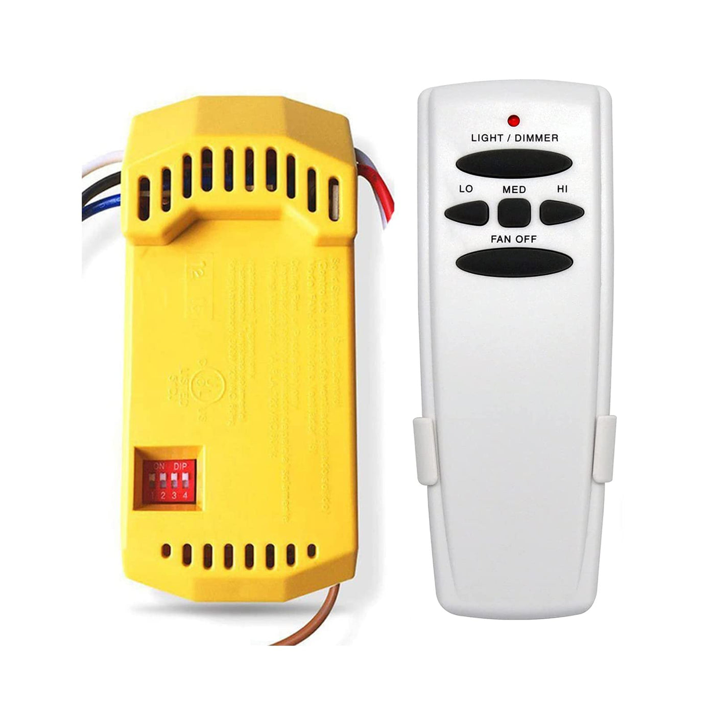Q: What features does the remote control offer for ceiling fan operation?A: The remote control features three-speed settings (high, medium, low) for optimal airflow control. Additionally, it includes a light dimmer function that allows you to adjust the brightness of incandescent lights, although it only turns LED lights on or off.