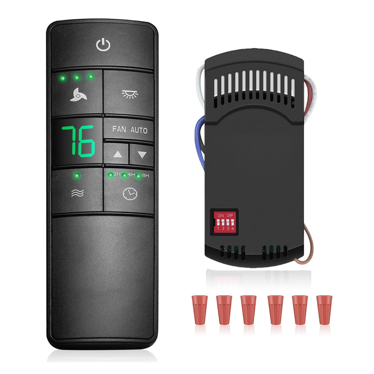 Q: How difficult is it to install this ceiling fan remote control?A: Installation of the Universal Ceiling Fan Remote Control Kit is straightforward and quick. You'll need to set the frequency combination of the transmitter and receiver to match, and follow the provided instructions for installation and operation.