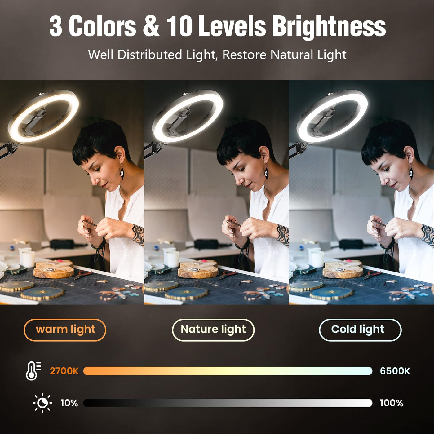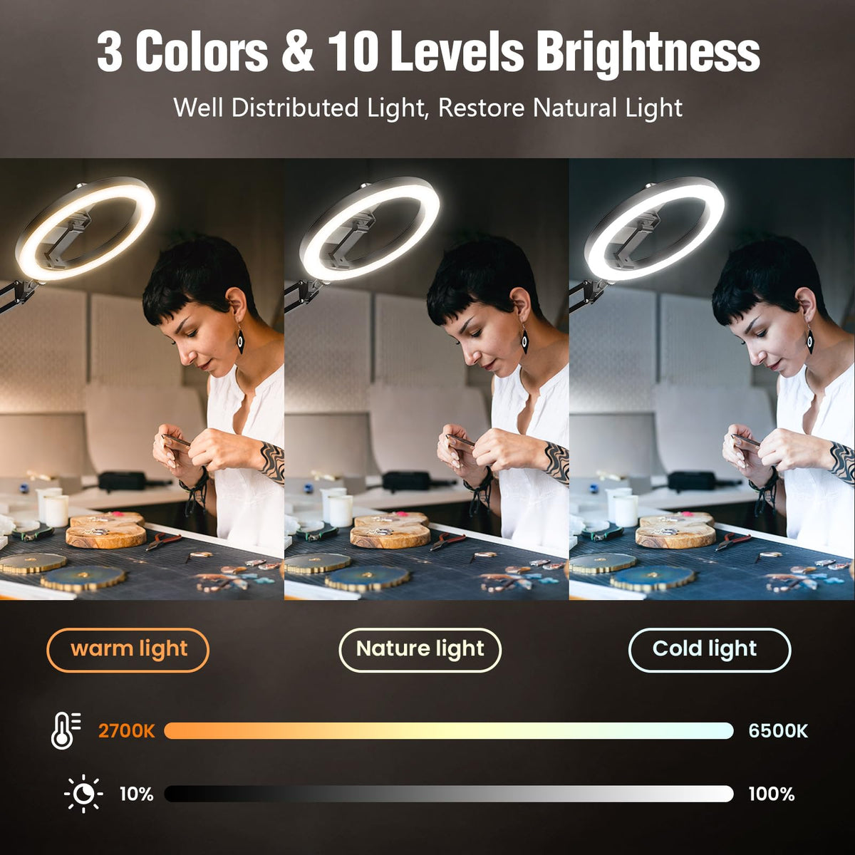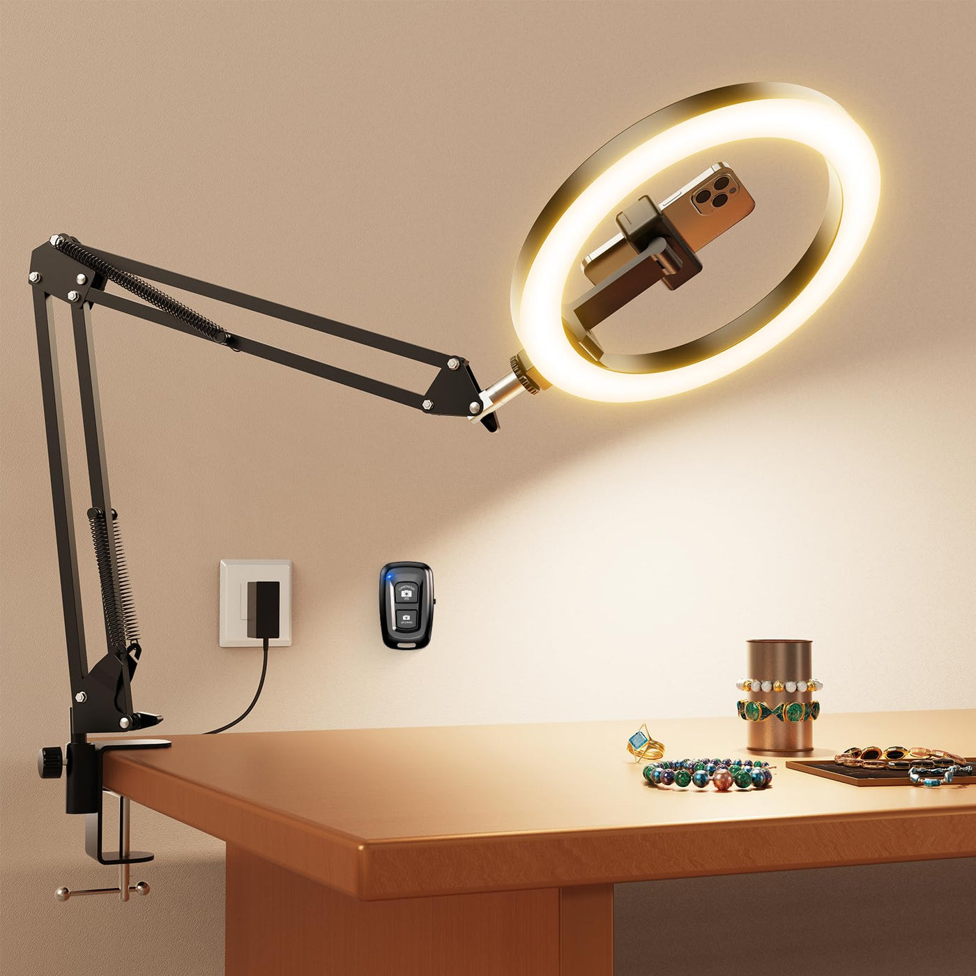 Upgrade 18W Ring Light Tripod Iphone For Desk, Ultra Bright 1800Lumens Overhead Camera Mount Circle Light With Remote Control &