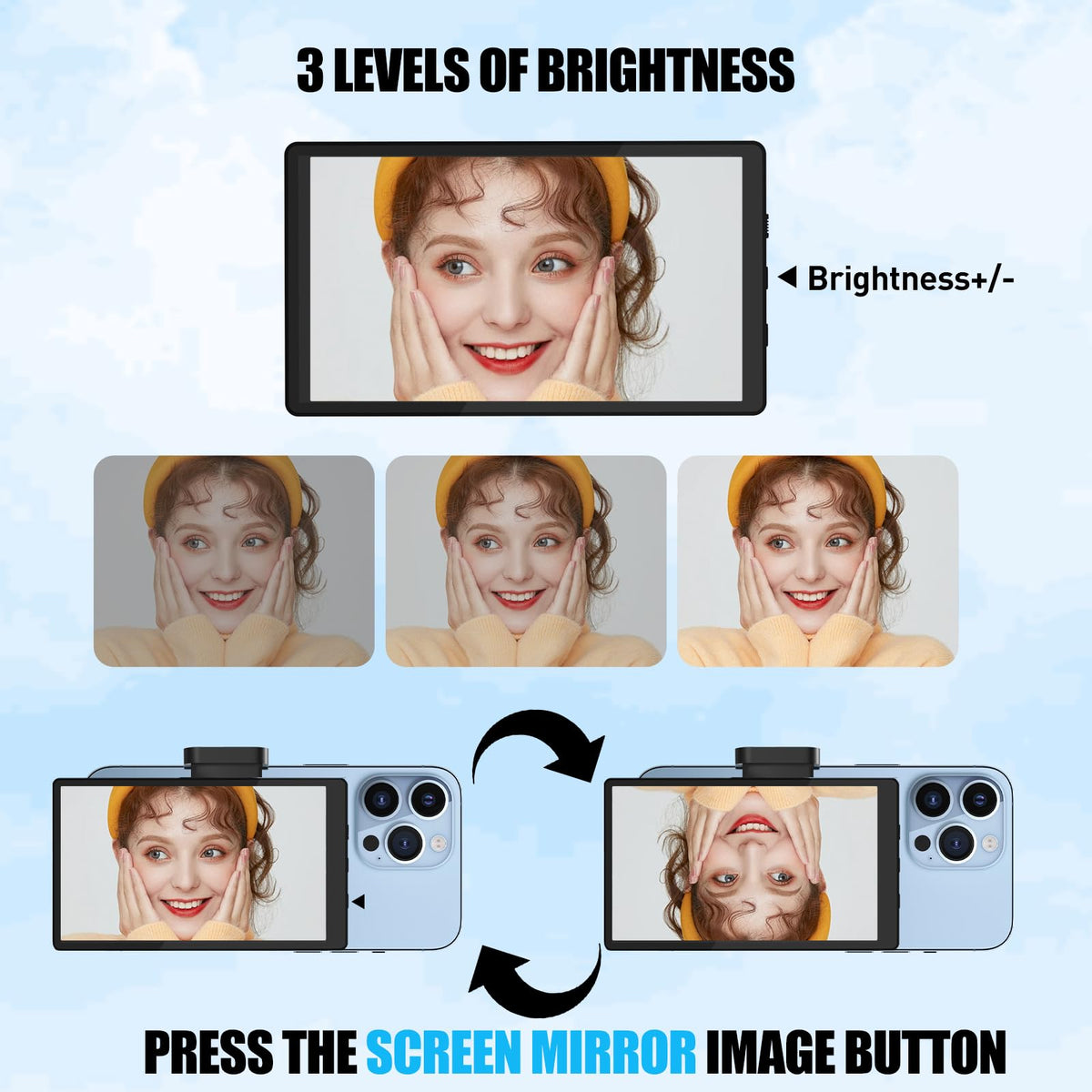 Usberg 5'' Magnetic Vlog Selfie Monitor Screen For Iphone - Back Camera Monitor W/Bluetooth Remote, Low Latency Hd Display, Scre
