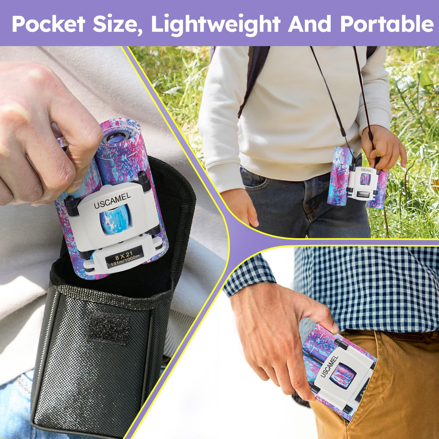 Uscamel Binoculars, Small Binocular For Kids And Adults, 8 21 Pocket Binoculars, Fmc Lens Waterproof Compact Binocular For Bird