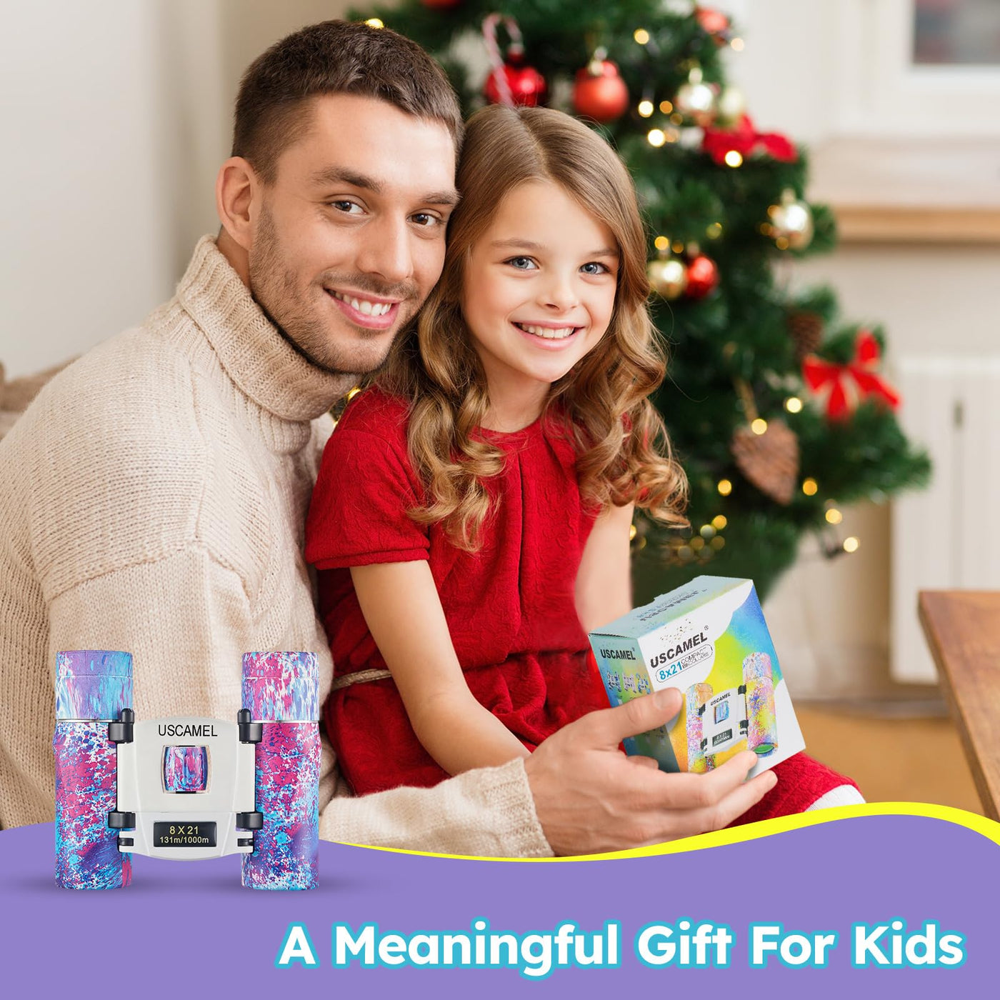 Q: What makes the USCAMEL binoculars a good gift option?A: The USCAMEL binoculars are thoughtful gifts for anyone who enjoys outdoor activities. Their combination of high-quality optics, ease of use, and stylish design in blue and red make them suitable for men, women, boys, and girls, making them perfect for occasions like Christmas and Father's Day.