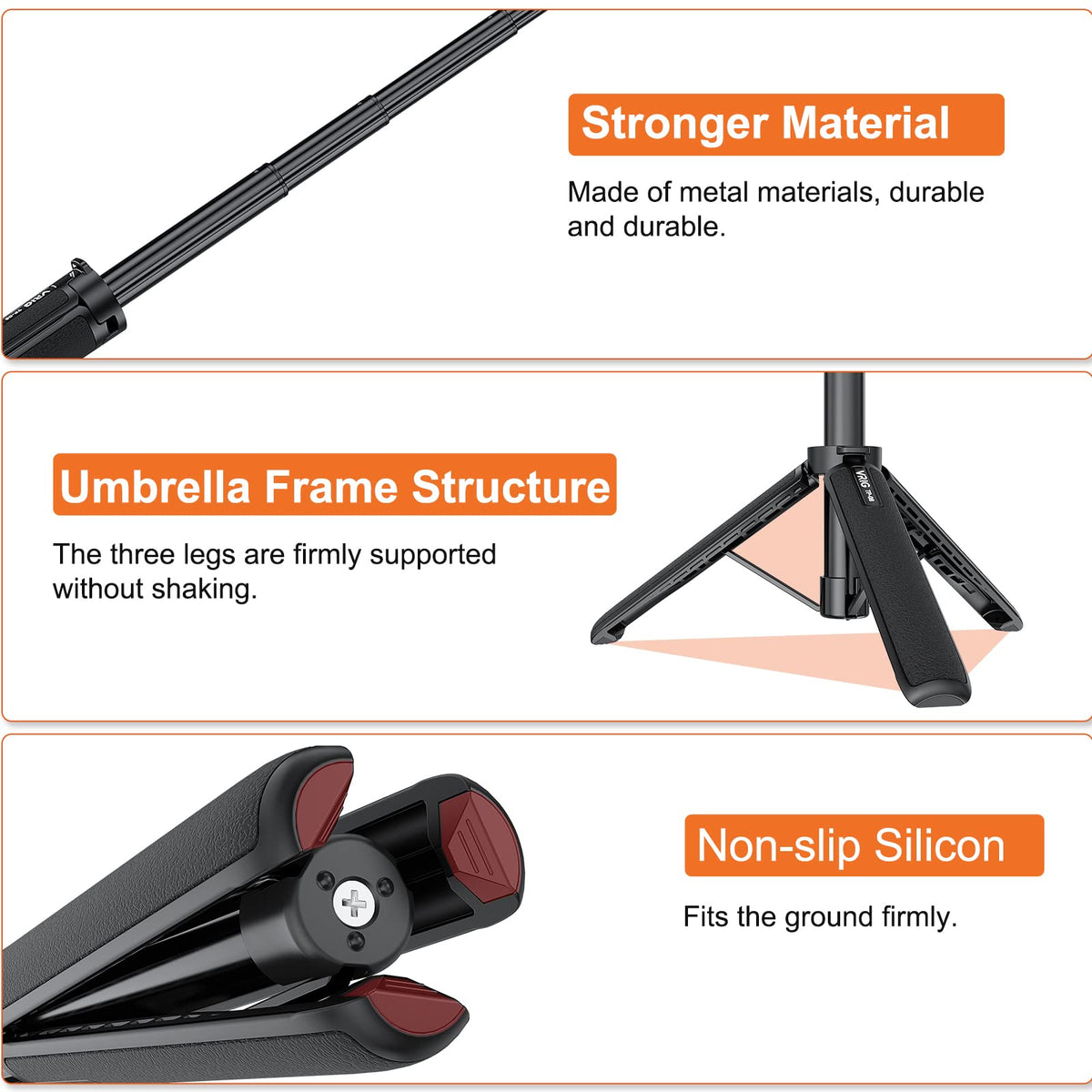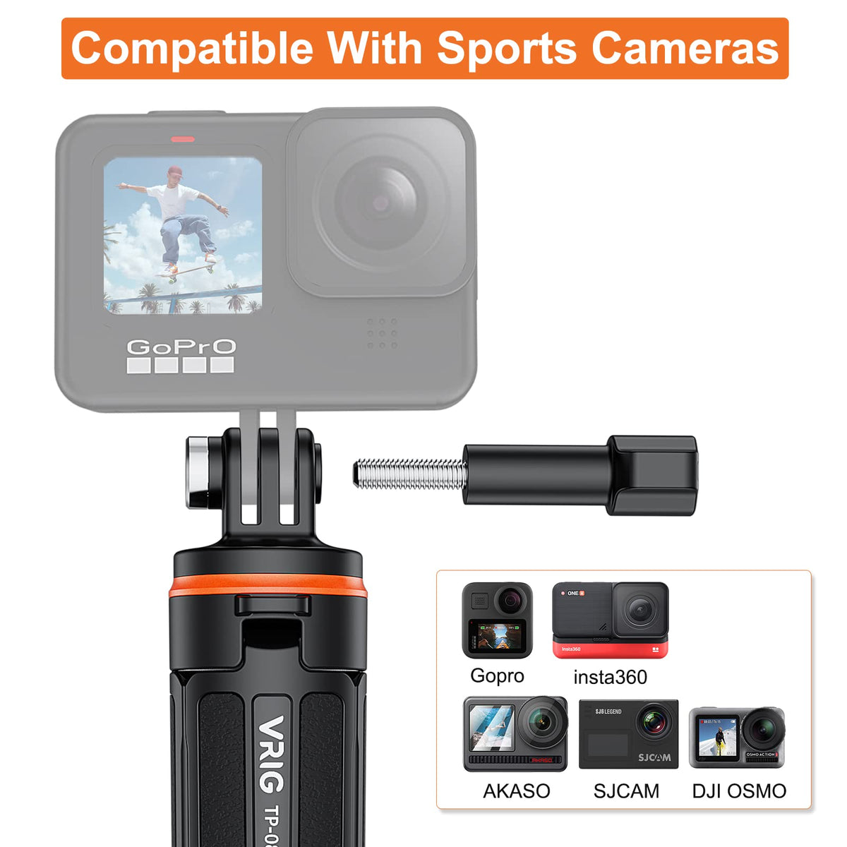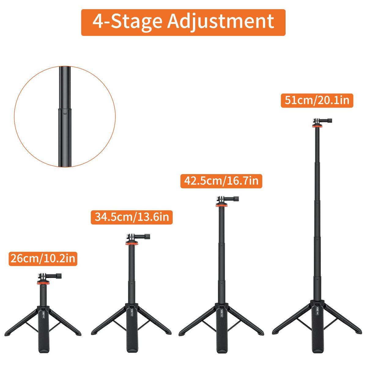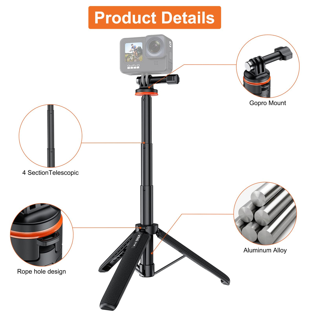Uurig 20.1' Mini Extendable Gopro Tripod Portable Selfie Stick Tripod Camera Tripod For Gopro Max Hero 11 10 9 8 7 6 5 4 3 3+ 2 1 Session