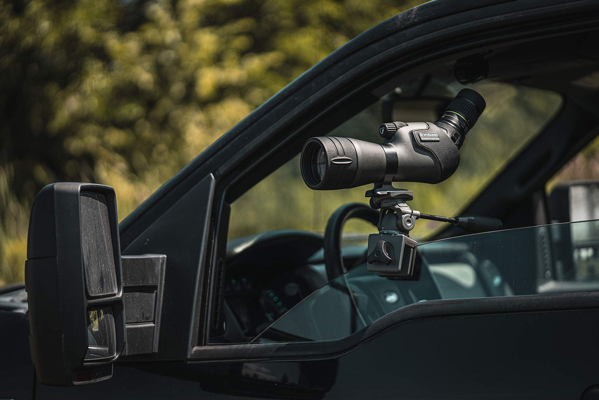 Observe The Moment From The Comfort Of Your Car With The Veo 2 Ph-28Wm Window Mount Which Easily Attaches To Vehicle Windows. Alternatively This Window Mount Can Be Attached To Fences, Tree Branches And Many More Options, Enabling A Steady Platform For Spotting Scopes, Cameras Or Camcorders. The Base Of This Window Mount Has A Clamp That Opens Up To 1.25'' With A Large Surface Area And A Non-Slip Rubber Face To Offer Maximum Grip On Any Surface. This Is Backed Up By A Solid Thread And An Ergonomic Locking Knob That Makes It Easy To Tighten/Release, Even In Cold And Wet Conditions. This Window Mount Comes With An Arca Swiss Compatible 2-Way Panhead That Is Ideal For Observation With A Spotting Scope, Or For Video With A Mirrorless/Dslr Camera Or Camcorder. With A Maximum Load Capacity Of 8.8 Pounds, This Window Mount Can Be Used With Almost Any Spotting Scope And Smaller Camera Kits. The Long Arca Swiss Compatible Qs-61P Quick Release Plate Supplied Is Designed To Allow You To Easily Secure A Spotting Scope Or Camcorder To The Window Mount, But Can Also Be Used For A Mirrorless/Dslr Camera. The Telescopic Pan Handle Then Helps Locate And Follow The Subject Intuitively, Locking/Unlocking The Position By Simply Twisting The Handle, Leaving The Other Hand Free For Other Key Tasks Such As Controlling The Focus Or Zoom. With The New Veo 2 Window Mounts By Vanguard, You Can Cover Miles Of Country Without Missing Any Of The Details.