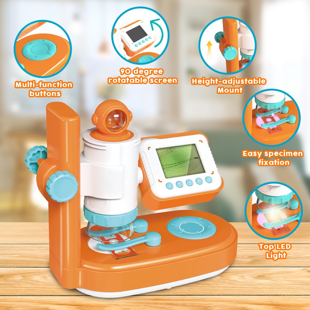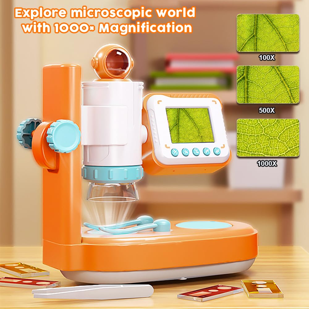 Vatos Mini Microscope For Kids,1000X Mini Scope Camera Kits With Specimens & Screen, Mini Microscope With Light, Portable Educat