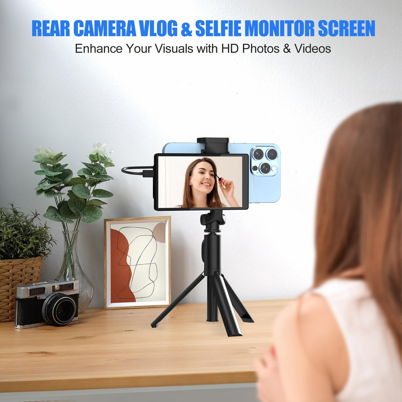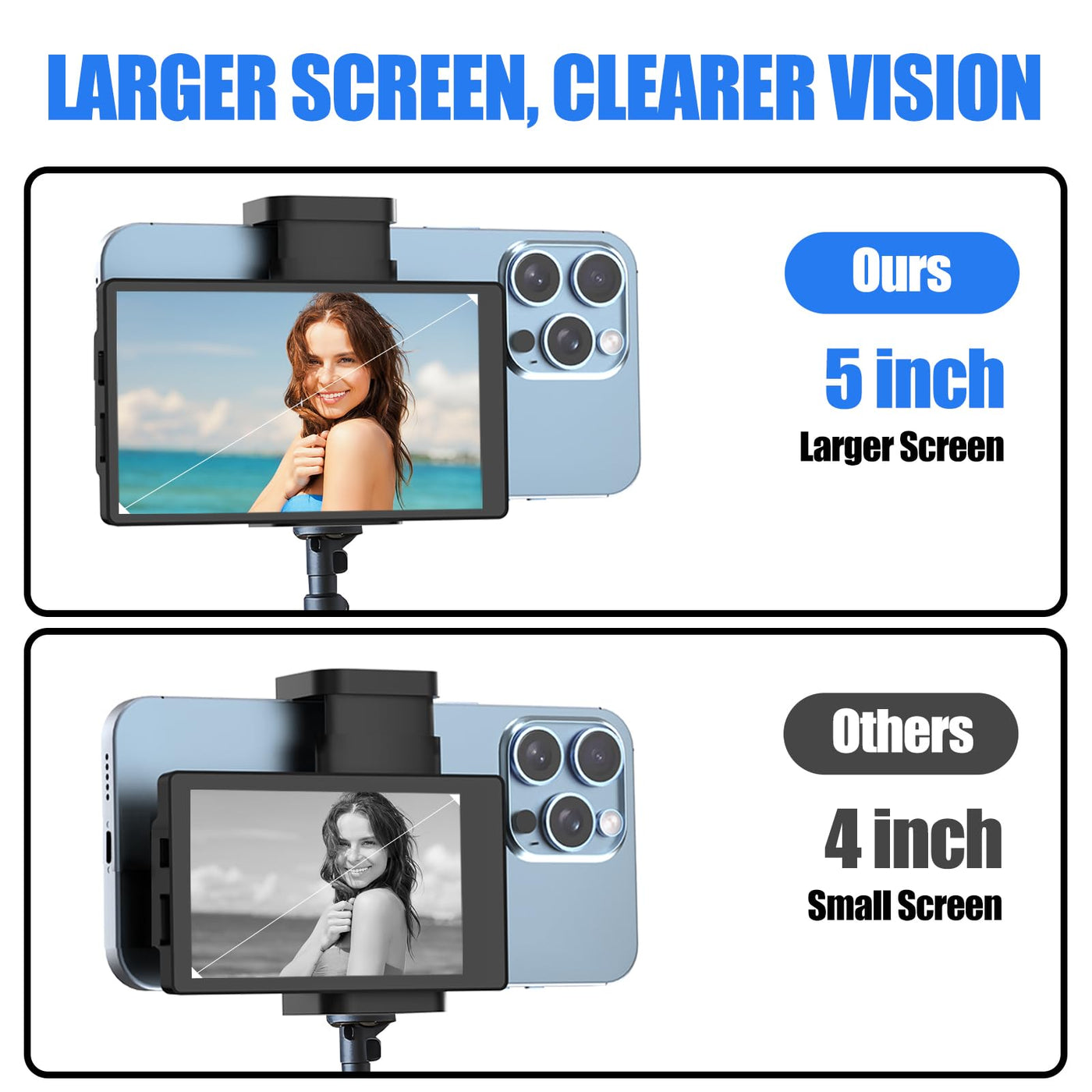 Vitano 5'' Vlog Selfie Monitor Screen For Iphone With Magnetic Clip, Back Camera Mirroring With Low Latency, Bluetooth Remote, W