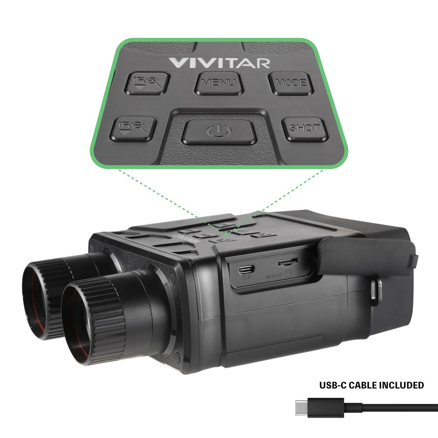 Experience Unparalleled Night Vision Capabilities With The Vivitar Night Vision Binoculars Camera. Designed For Outdoor Enthusiasts And Hunters, These Binoculars Combine Advanced Optical Magnification With Cutting-Edge Camera Technology To Provide An Exceptional Viewing And Recording Experience. With 4X Optical Magnification And A 24Mm Objective Lens Diameter, These Binoculars With Camera Built In Offer Clear And Detailed Visuals Even In Low-Light Conditions. The Built-In Infrared Technology Extends Your Vision Up To An Impressive 300 Meters, Making Them An Essential Tool For Nighttime Exploration And Hunting Expeditions. Capture Every Detail With 1080P Full Hd Video Recording And 16Mp High-Resolution Photos. The 5X Digital Zoom Allows You To Focus On Specific Areas Of Interest, Providing A Closer Look At Your Subjects Without Compromising Image Quality. Whether You'Re Documenting Wildlife Or Surveying The Terrain, These Night Vision Binoculars For Adults Deliver Exceptional Clarity. Equipped With A Daylight View Distance Of Up To Infinity, These Infrared Binoculars Are Equally Effective During The Day. The Compact And Lightweight Design Ensures Easy Portability, While The 3-Watt Infrared Led With 850Nm Further Enhances Your Night Vision Capabilities. Explore The Wilderness With Confidence, Knowing You'Re Equipped With Top-Notch Gear. Navigate Through Settings And Review Your Captures Using The User-Friendly 2.7'' Full Hd Lcd Display. The Type C Usb Port Enables Quick And Convenient Data Transfer, And The Micro Sd Card Compatibility (Up To 32Gb, C10) Ensures You Have Ample Storage Space For Your Photos And Videos. Elevate Your Outdoor Experiences With The Vivitar Night Vision Binocular Camera. Whether You'Re An Avid Hunter, Nature Enthusiast, Or Simply Seeking A New Level Of Exploration, These Binoculars For Stargazing Provide The Tools You Need To See And Capture The World Like Never Before.