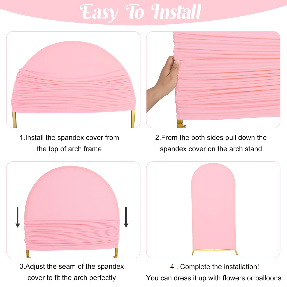 Spandex Arched Cover This Spandex Arch Backdrop Cover Suit For Metal/Plastic Arches, It Slips Over The Arch With Ease,You Will Find It Fits Tight Perfectly.You Can Also Iron On Letters Or Pictures To The Cover For A Decor Specific Style Of Decor And Then Decorate Around The Arch With Flowers Or Balloons! Specifications: Item Name: Spandex Arch Backdrop Cover Material: 90% Polyester And 10% Spandex Color: Pink Size: 7.2Ft-Width*Height(Wxh):4X7.2Ft Package Include:1 Arch Cover( Note: Arch Frame Not Included. ) Kindly Note: (1)The Differernt Monitors Will Show The Different Color Effects, The Goods You Get May Be Will Have Little Color Difference,So If Yu Can Not Accept, Please Buy With Caution (2)Item Send By Folded, There Will Be Wrinkles.Here Are Ways To Remove Wrinkles: 1) Roll It Up Tightly With A Cylinder For 3-4 Days, It Will Be Ok. 2) Heat It With A Steam Iron On The Back Of Item(Low Temperature), Then It Will Be Smooth Again Note: When Ironing The Background , In Order To Prevent The Background From Being Damaged, It Is Recommended To Place A Cloth Between The Steam Iron And The Back Of The Background And Then Iron On The Back Of Background At Low Temperature.