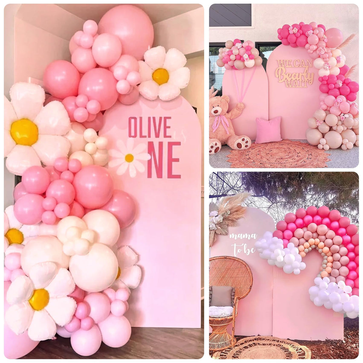 Wedding Arch Cover 7.2Ft Pink Spandex Fitted Wedding Arch Cover Round Top Stand Covers Double Side Stretchy Chiara Cover Backdro