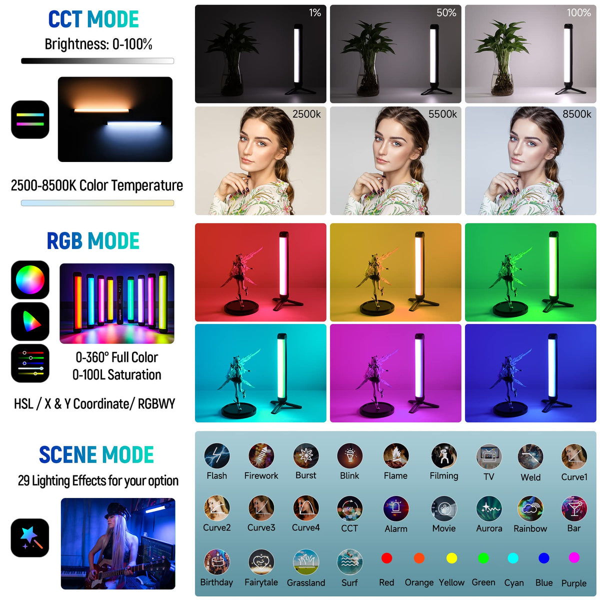 Q: What types of photography can benefit from the Weeylite K21 Stick Light?A: The Weeylite K21 is ideal for various photography styles, including portrait, product, and video recording. It supports multiple lighting modes and scene settings, making it versatile for YouTubers, vloggers, and photographers.