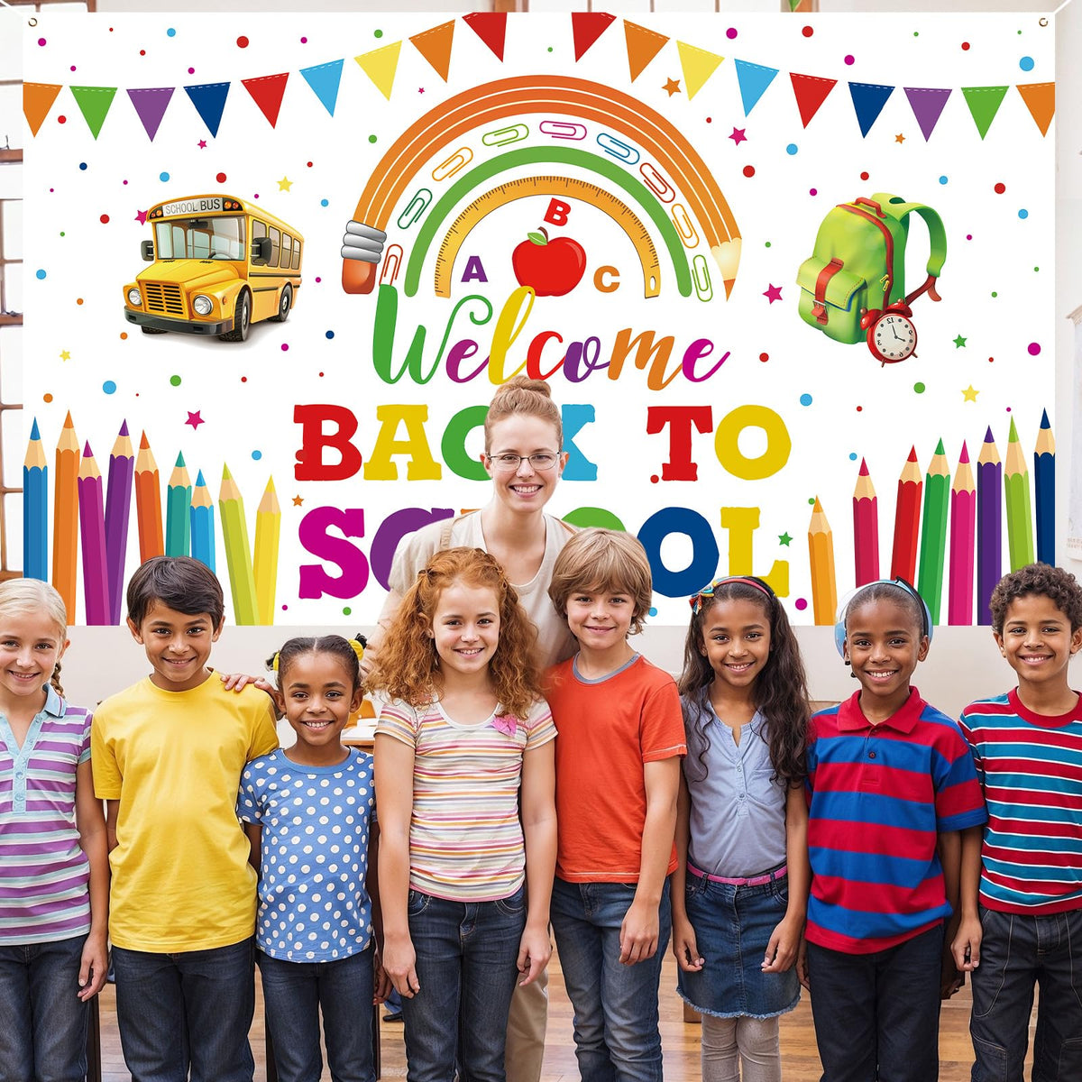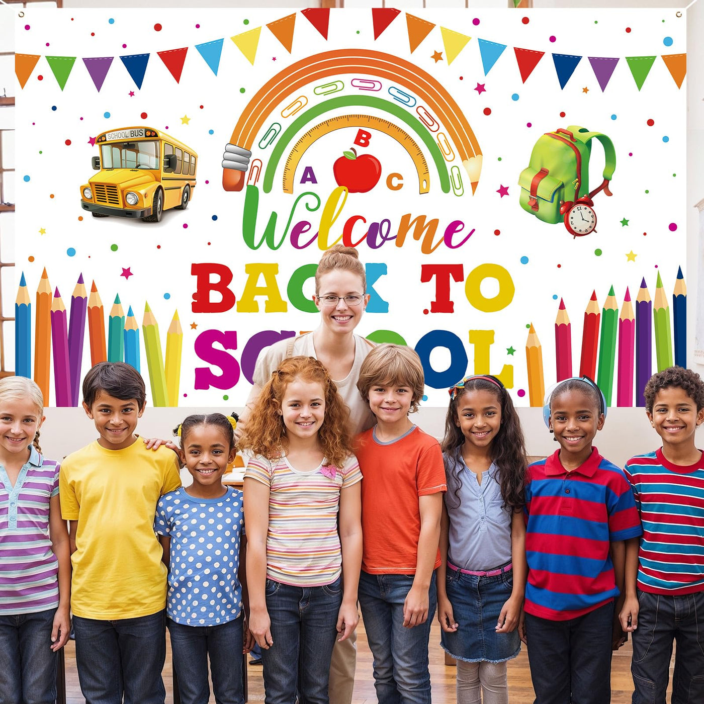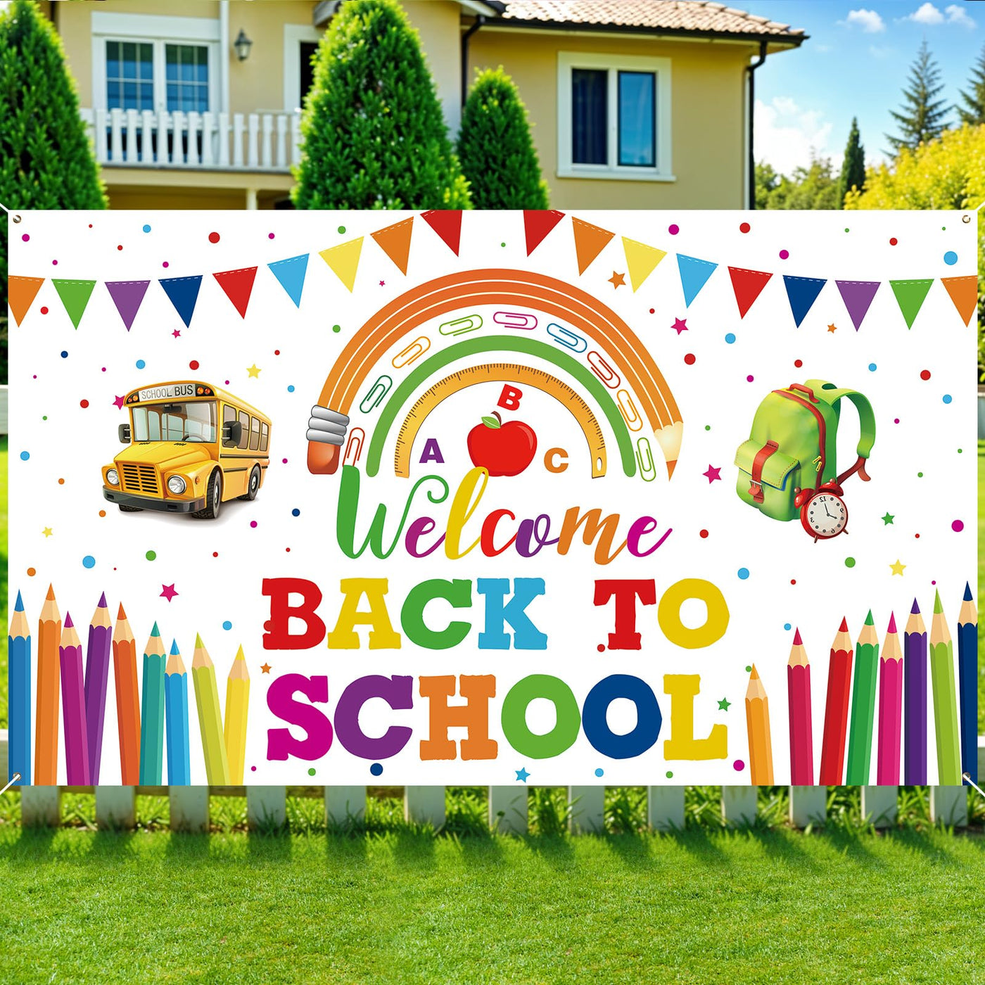 Nice Ornaments:Welcome Back To School Banner, Designed In Vibrant Colors And Printed With Classic Patterns Of School Bus And Schoolbag, Adding An Impressive Touch To The First Day-Of-School Party, Serving As An Ideal Decoration To Create A Memorable Atmosphere.Easy To Use:The Back To School Backdrop Decorations Is Very Easy To Assemble. You Can Either Hang It Or Place It Horizontally. The Motivational Classroom Banner Can Be Used Multiple Times,So You Can Reuse It For Next Year.Specifications:Color : Mainly White Size:73 X 44 Inchesmaterial: Polyesterpackage Includes:1Pcs Welcome Back To School Backdrop