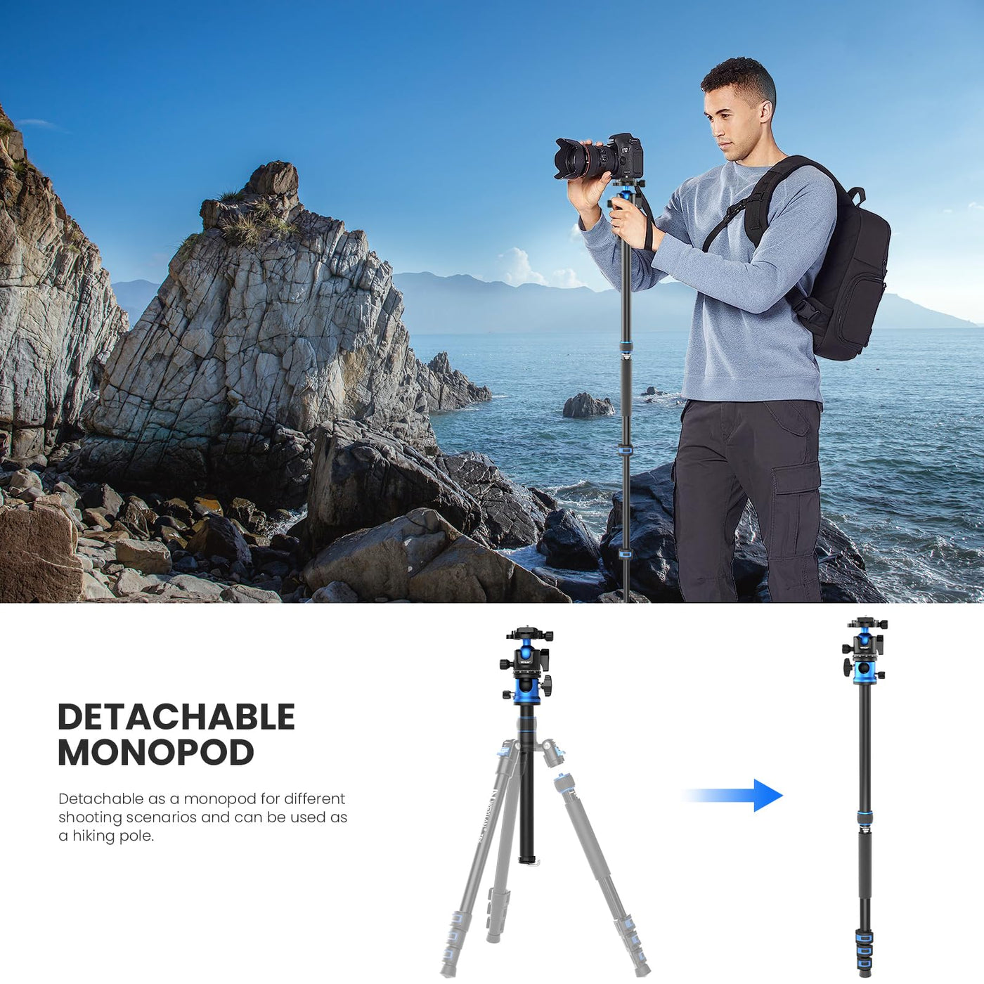 Weyllan Tp6 Tripod For Camera, 67'' Horizontal Overhead Camera Tripod Aluminum Portable Monopod With 36Mm Ball Head, Tripod Phon