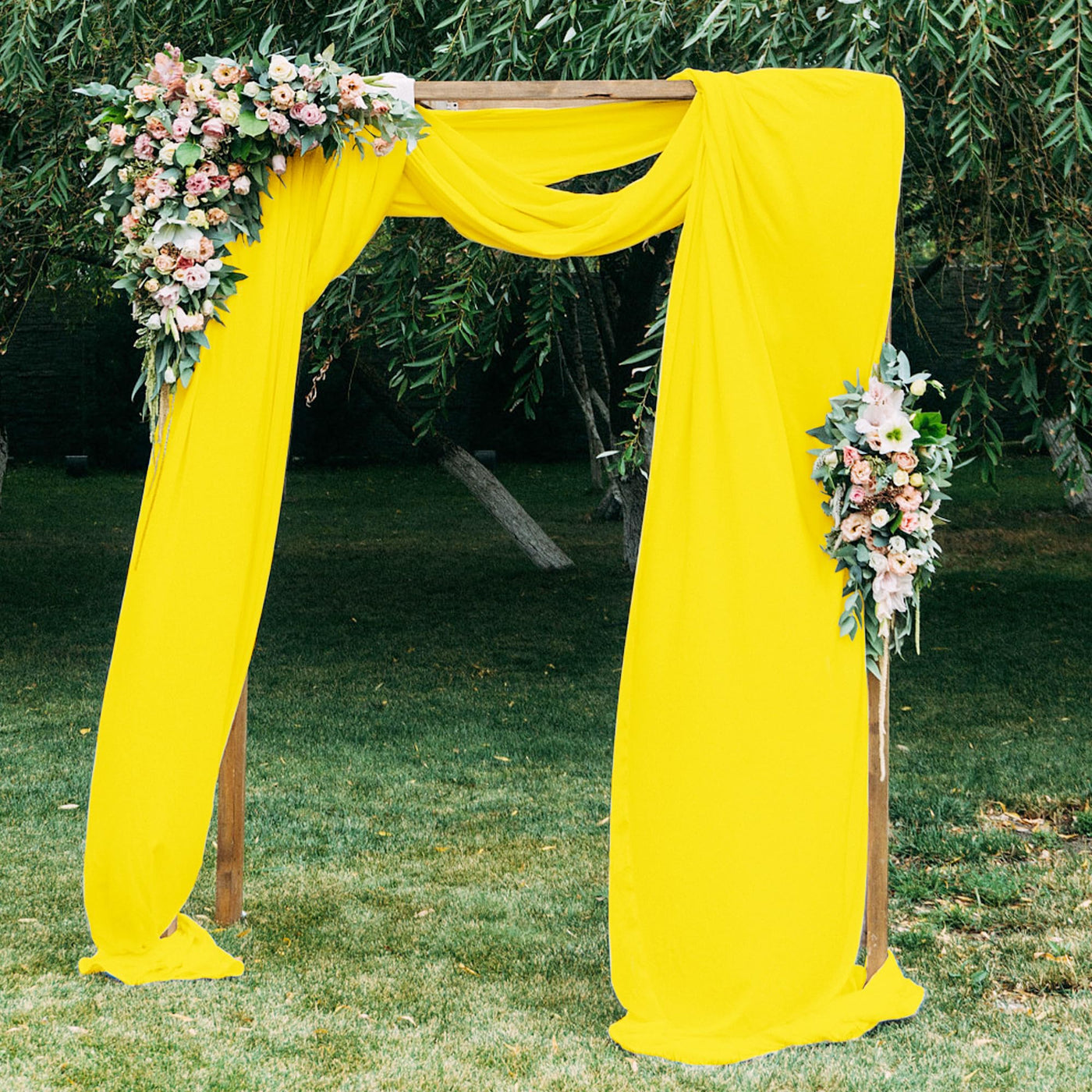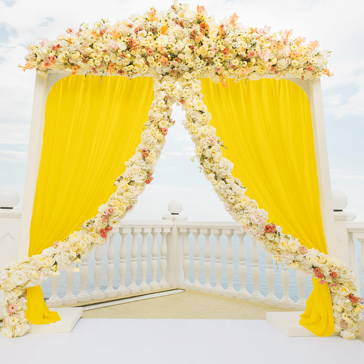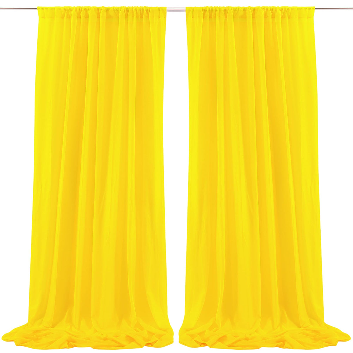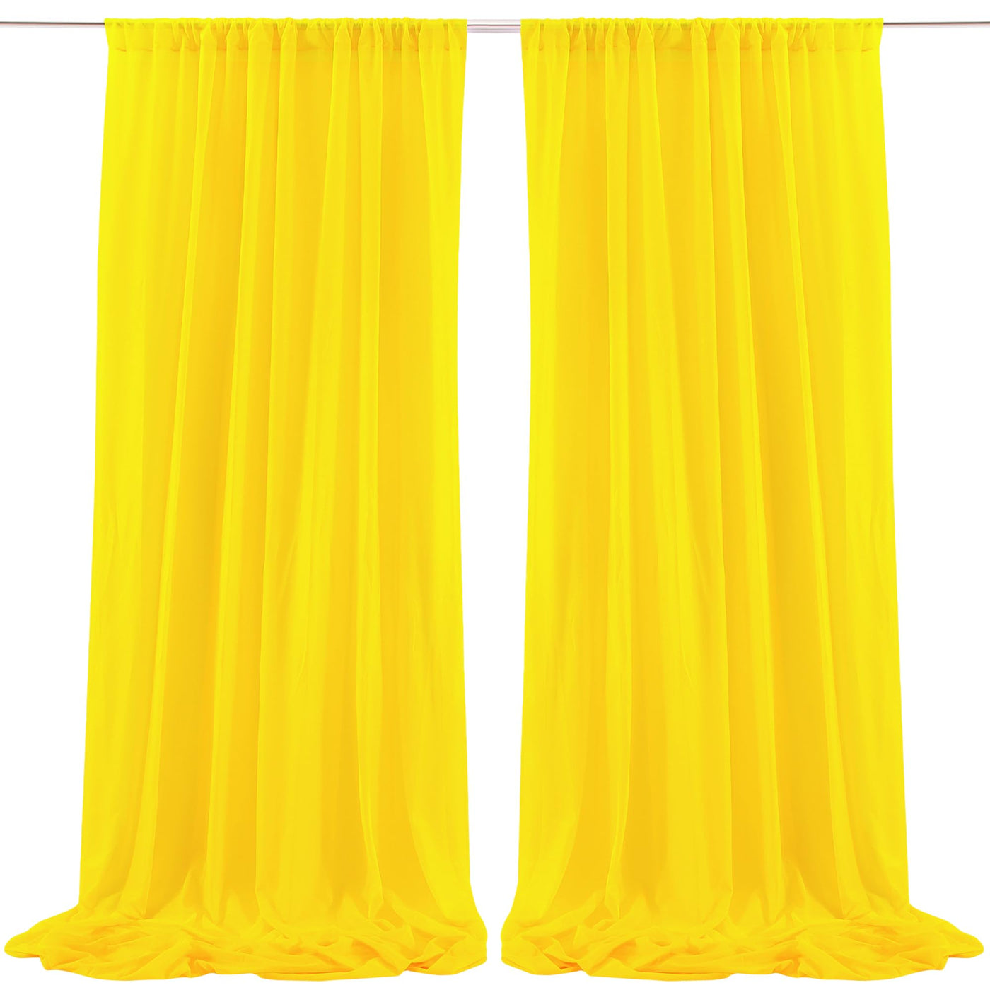 ?Backdrop Curtain Panels?- You Will Get 2 Panel Yellow Sheer Chiffon Backdrop Drapes. Each Panel Measures 5Ft(W) X 10Ft(H). Entire Backdrop Curtain Measures 10Ft(W) X 10Ft(H). Perfect Wedding Backdrop For Ceremony For Your