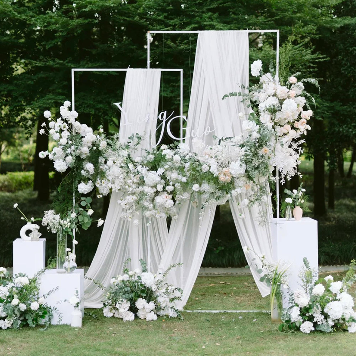 Wokceer Wedding Arch Draping Fabric 4 Panels 28.7 X 20Ft White Sheer Fabric Backdrop Arch Draping For Wedding Ceremony Birthday