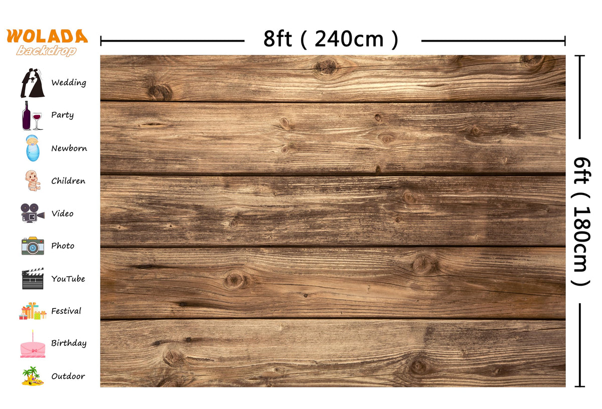 Wolada 8X6Ft Rustic Wood Wall Backdrop Natural Brown Wooden Board Photography Background Baby Shower Birthday Party Cake Table D