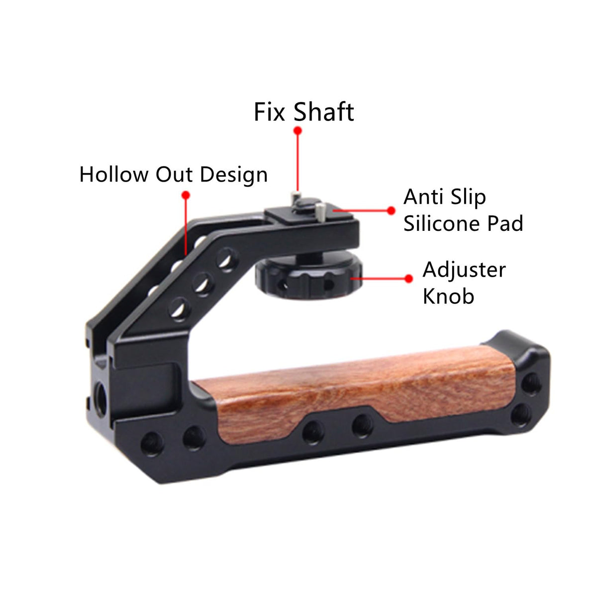 Fugasun Wooden Camera Top Handle 1.Special Designed For Camera Cage:With 1/4'',3/8'' Threaded Holes With Locating Pins For Arri Grip For Camera Cage 2.Special Designed For Camera Cage:Wooden Camera Top Handle With 3 Cold Shoes To Mount Dslr Camera. 3.Cnc Precision Machining,Surface Anode Anti-Oxidation Treatment.Accurate Positioning And Solid Quality. Package Includes: 1 * Fugasun Wooden Top Handle 1 * Hex Spanner