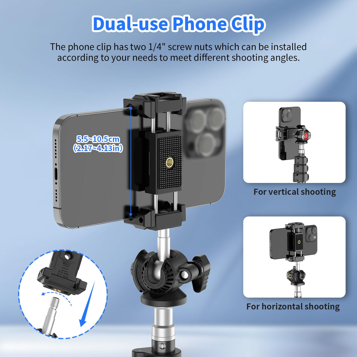Xxzu Phone Tripod Mount With Ball Head,Tripod Head 360Rotating Camera Ball Mount, Phone Holder Adapter With Cold Shoe, 1/4''Scre