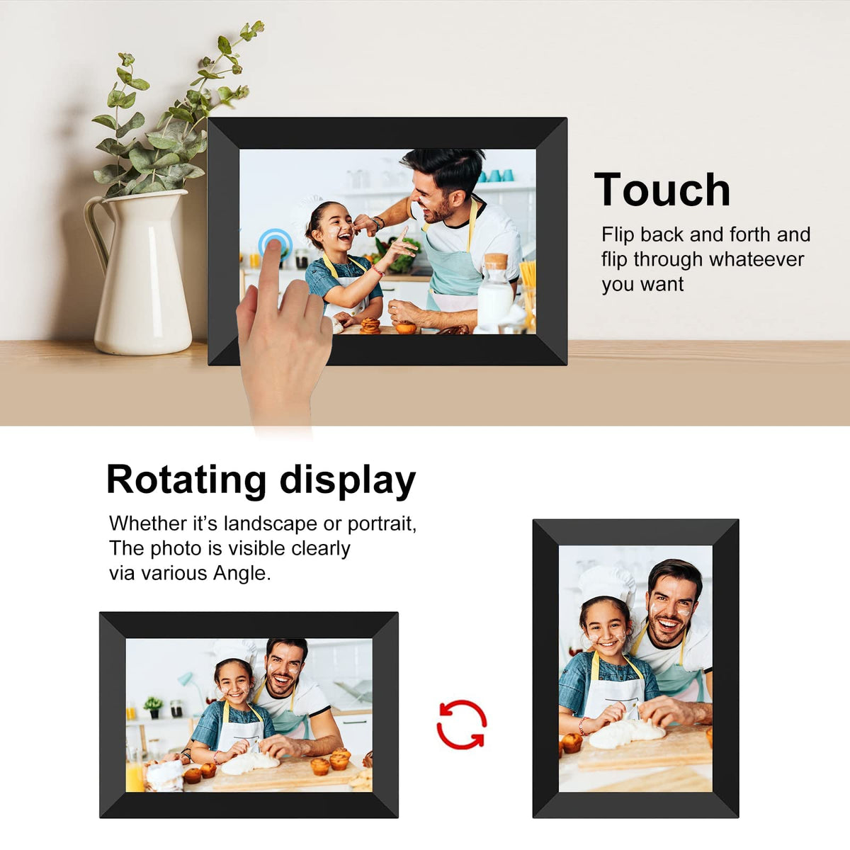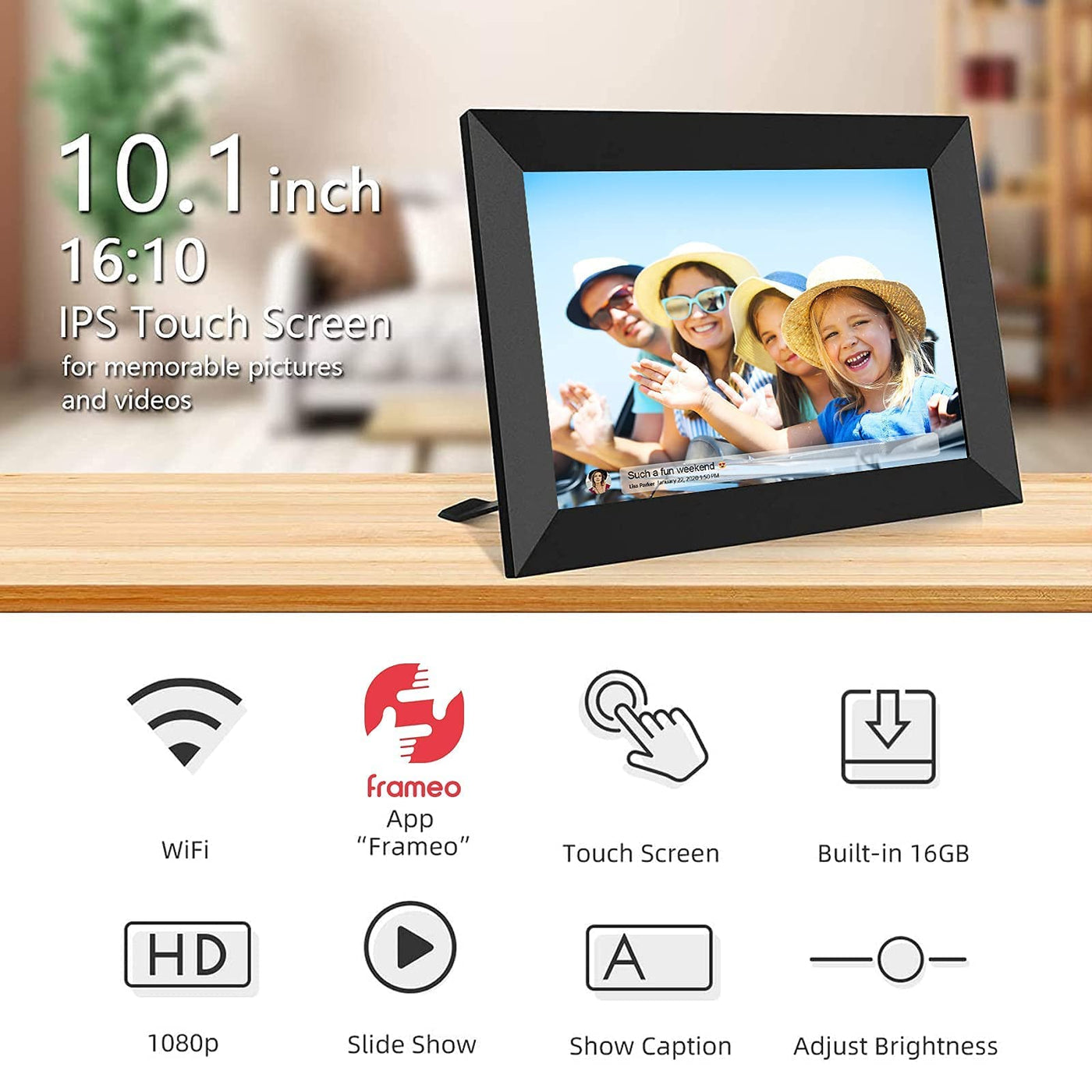 Yenock Frameo Digital Photo Frame Wifi 10.1 Inch Hd Ips Lcd Touch Screen, 16Gb Memory, Auto Rotate, Wall Mountable, Easy Setup T