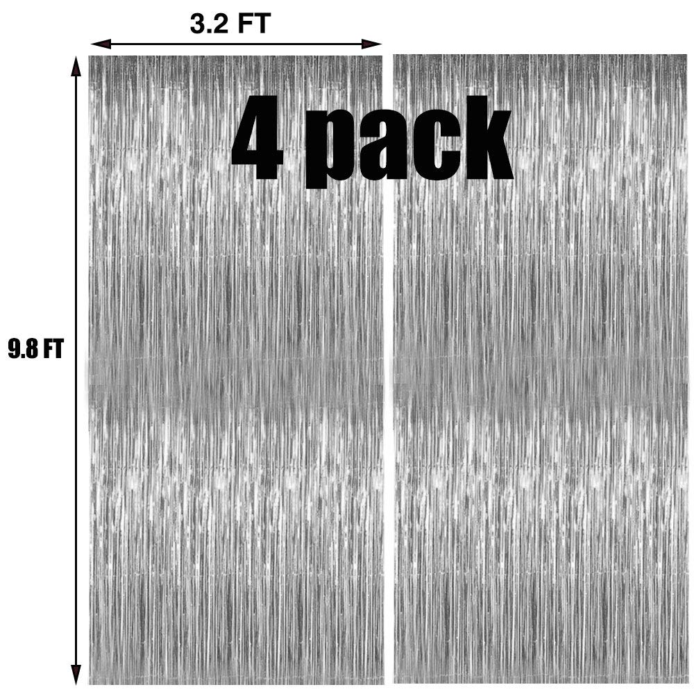 Yeson Silver Foil Fringe Curtains Metallic Tinsel Shimmer Curtain Party Backdrop Decorations,Pack Of 4