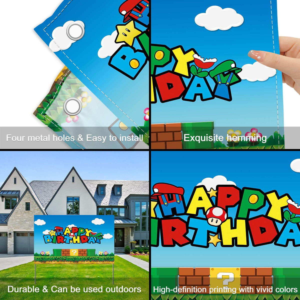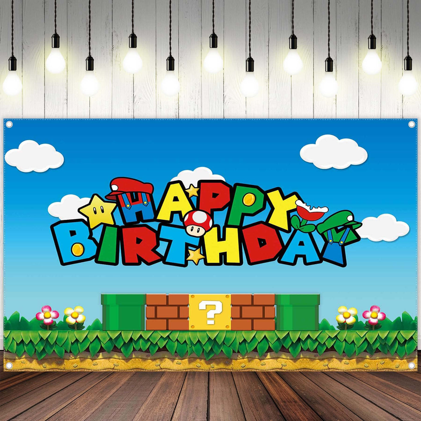 Yriujul 72X43Inch Fabric Birthday Video Game Backdrop Super Brother Adventure Photography Background Cartoon Gold Coin Party Dec