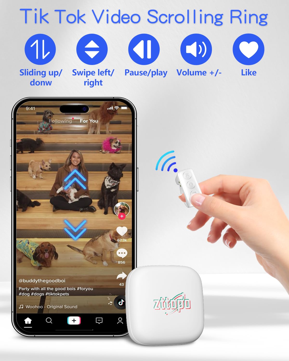 Zttopo Tiktok Scrolling Ring, Tik Tok Bluetooth Remote Control, Kindle App Page Turner With Carrying Case, Camera Photo Clicker