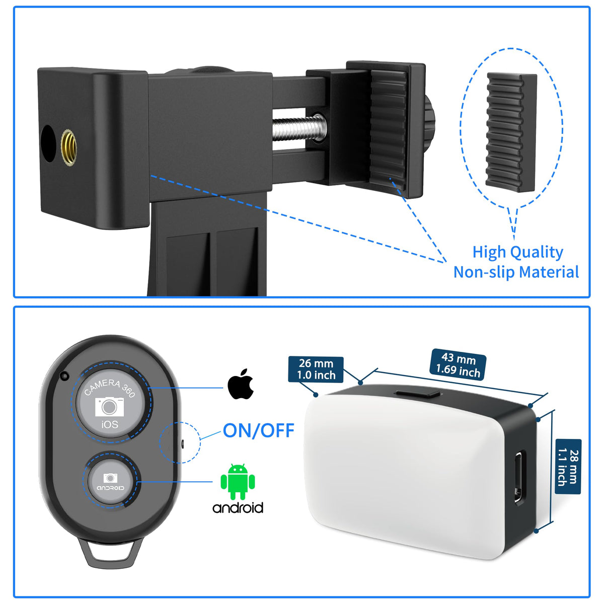 Zttopo Universal Phone Tripod Mount Adapter With Wireless Camera Remote And Led Light, Cell Phone Holder With Adjustable Clamp F