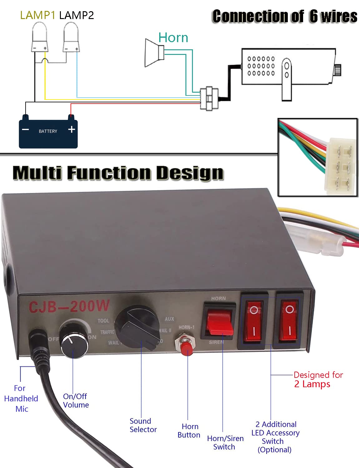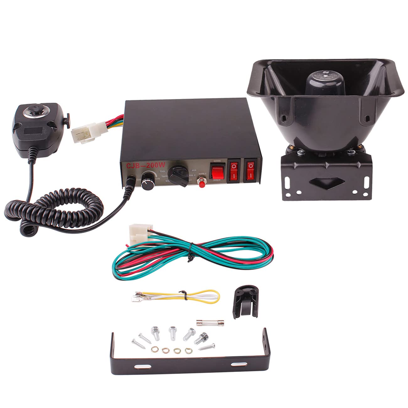 9 Tones 200W Emergency Warning Police Siren Speaker Pa System Kit With Handheld Microphone & 2 Lights Control Switches For Firefighter Ambulance Vehicles Truck Car Suv Atv Utv