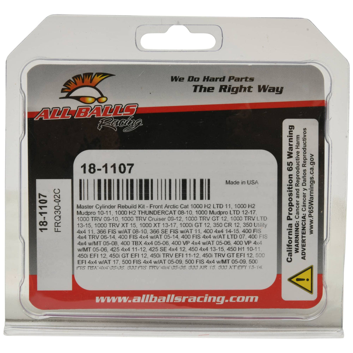 All Balls Racing 18 1107 Master Cylinder Rebuild Kit Compatible With/Replacement For Arctic Cat 1000 H2 Ltd, 350 Utility 4X4, 36