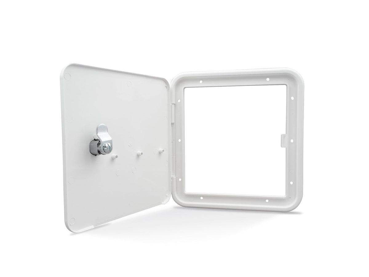 Guaranteed Not To Yellow Or Fade! Multi-Purposes Hatch Does Not Have Back So It Can Be Used Anywhere Where You Need Access Through A Door While Keeping What'S Behind It Secure. Comes With A Key Lock With A ''Global Pro'' Interchangeable Automotive Type Cylinder That Can Be Changed To Match Your Entry Door Lock Or Other Compartments.