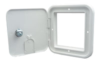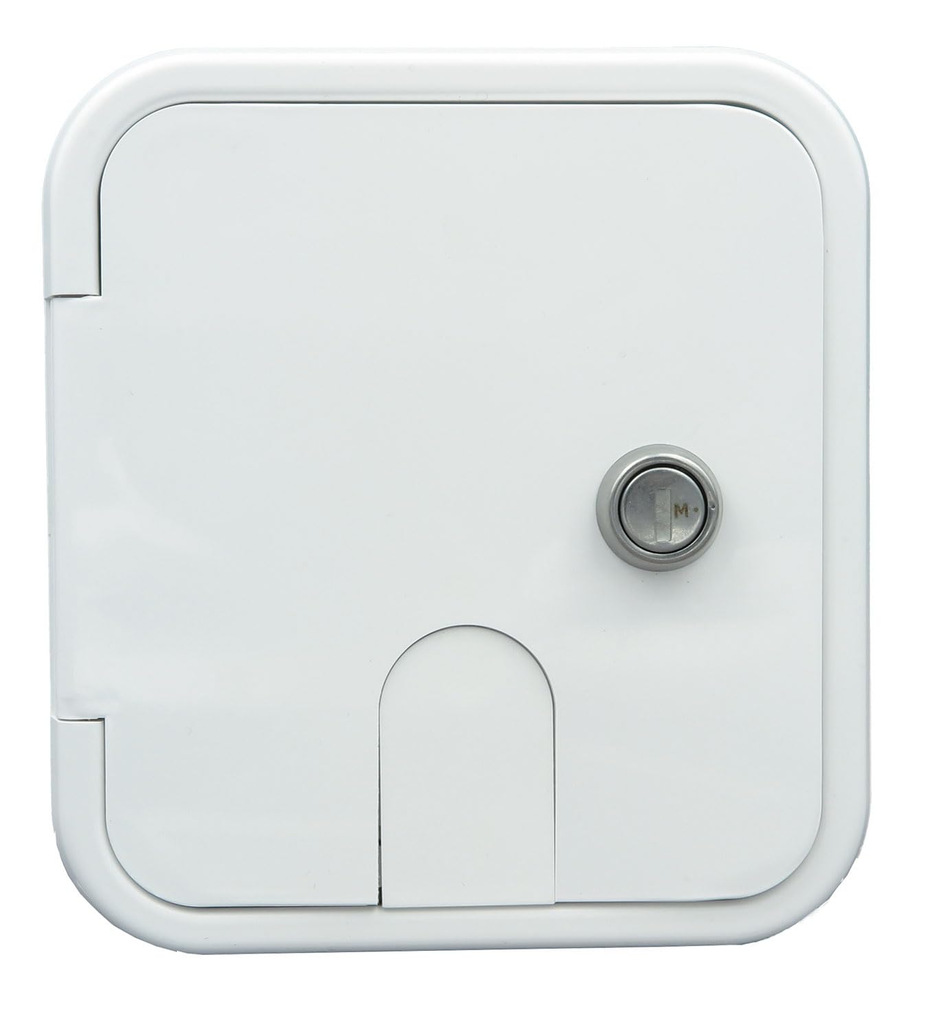 Guaranteed Not To Yellow Or Fade! Comes With A Vermin Door That Accepts A 30Amp Or 50Amp Cord. Vermin Door Shuts When Not In Use Keeping Vermin, Dirt And Debris Out Of The Hatch. Comes With A Key Lock With ''Global Pro'' Interchangeable Automotive Type Cylinder That Can Be Changed To Match Your Entry Door Lock Or Other Compartments.