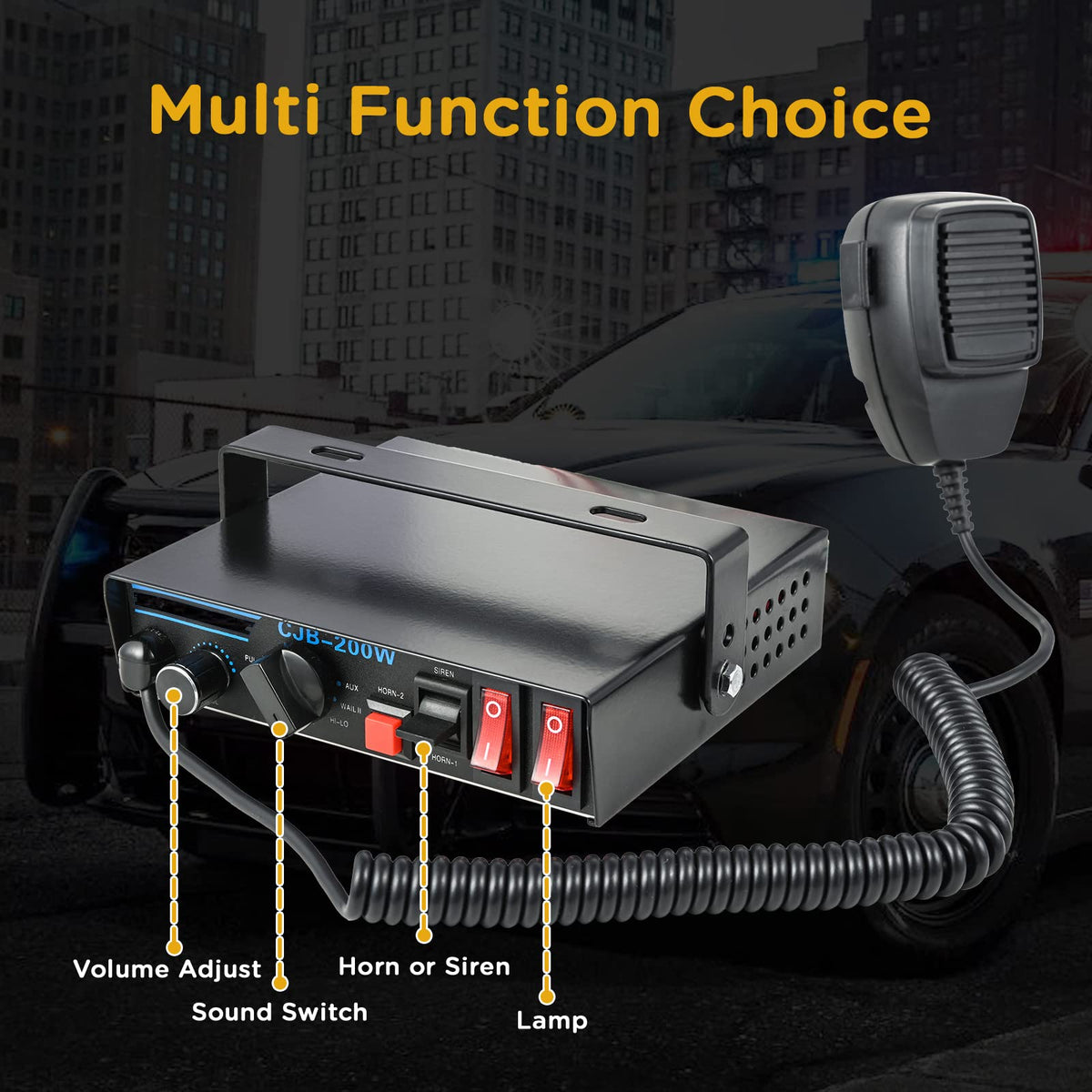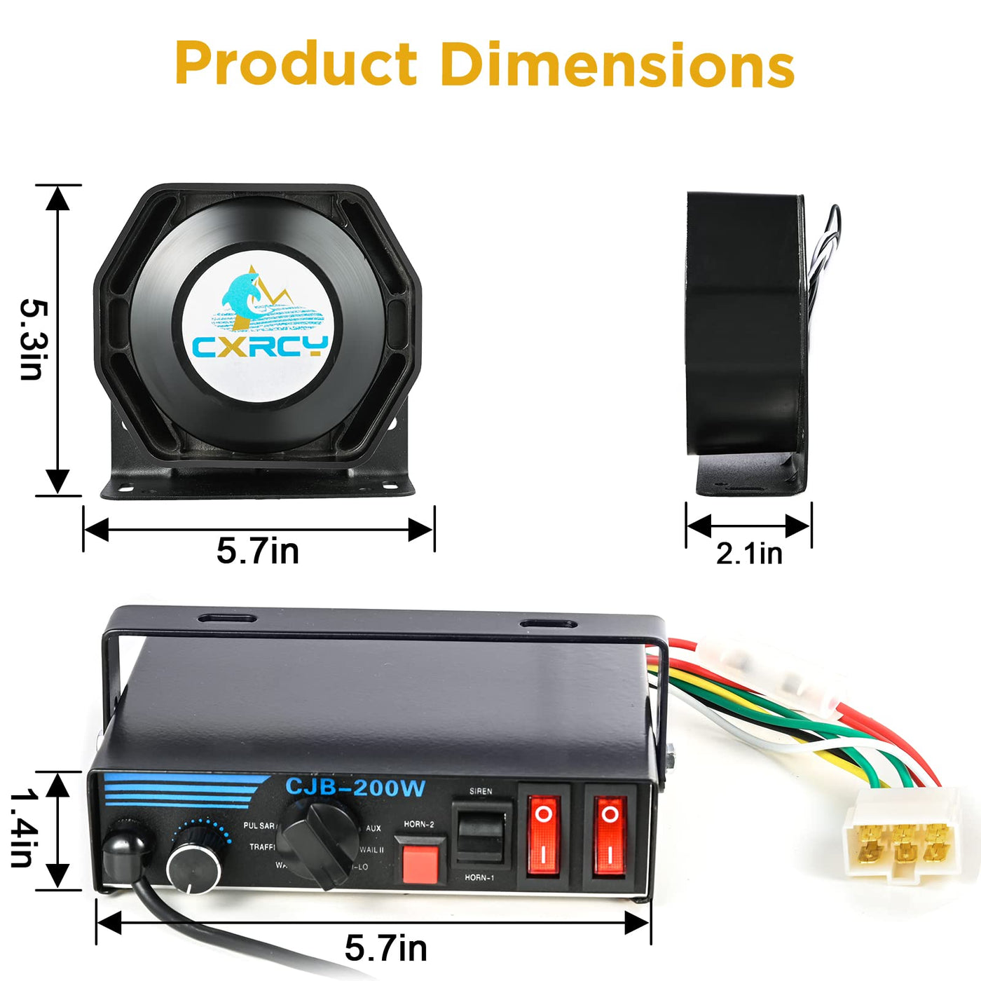 Cxrcy 200W Loud Police Siren Kit 9 Tones 120-150Db Emergency Warning Alarm Siren Speaker 1 Horn Pa Mic System Or Emergency Police Cars Vehicle Trucks