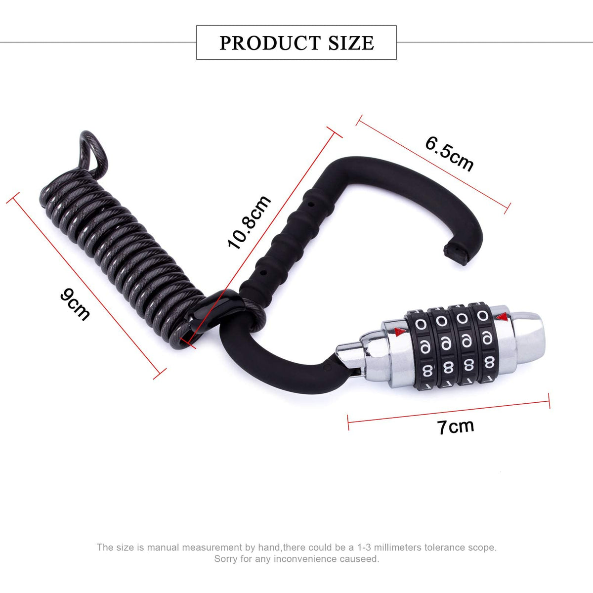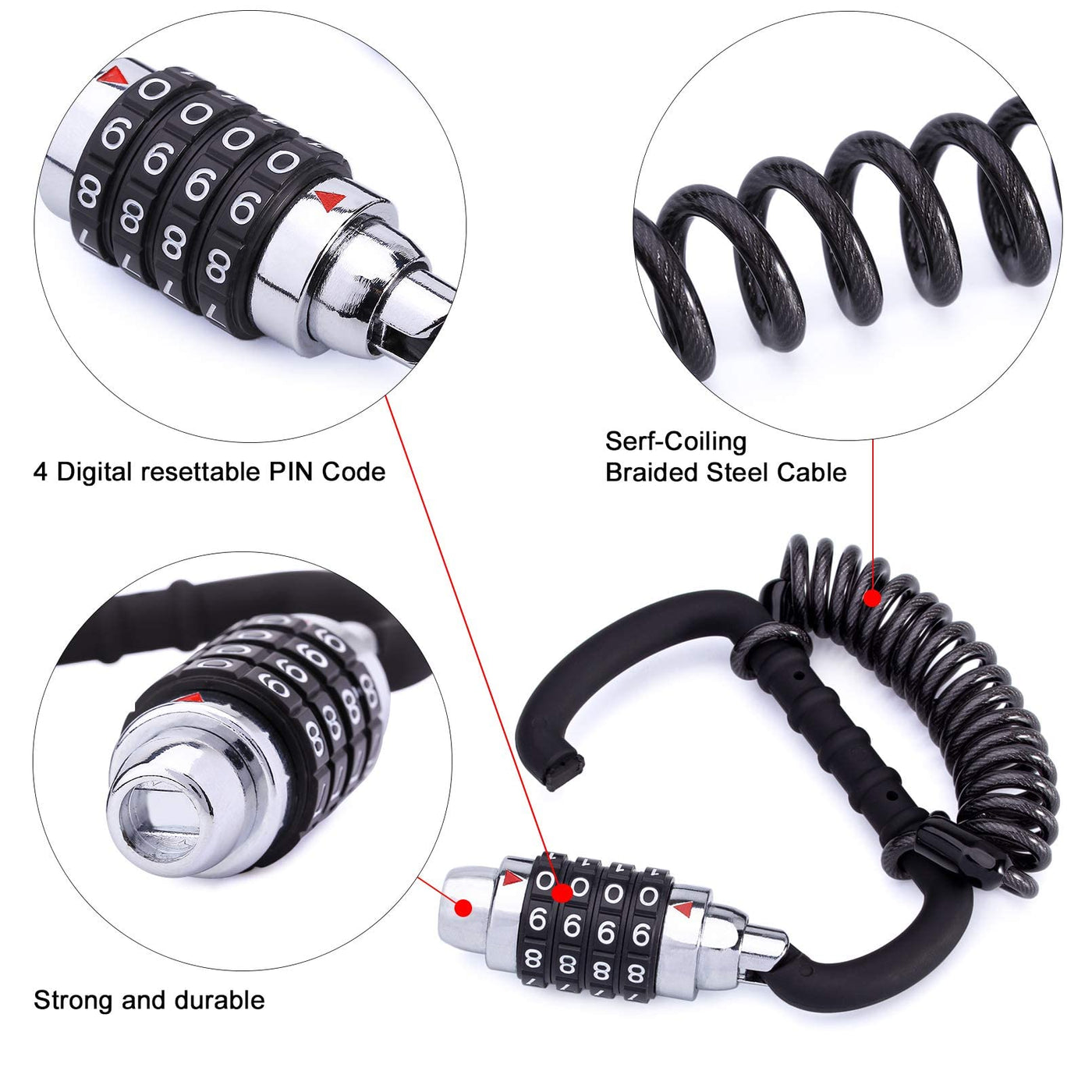 Meetlocks Motorcycle Helmet Cable Lock With T Bar 4 Digit Resettable Bike Lock Combination Bicycle Lock Cable Caribeaner Lock Bi
