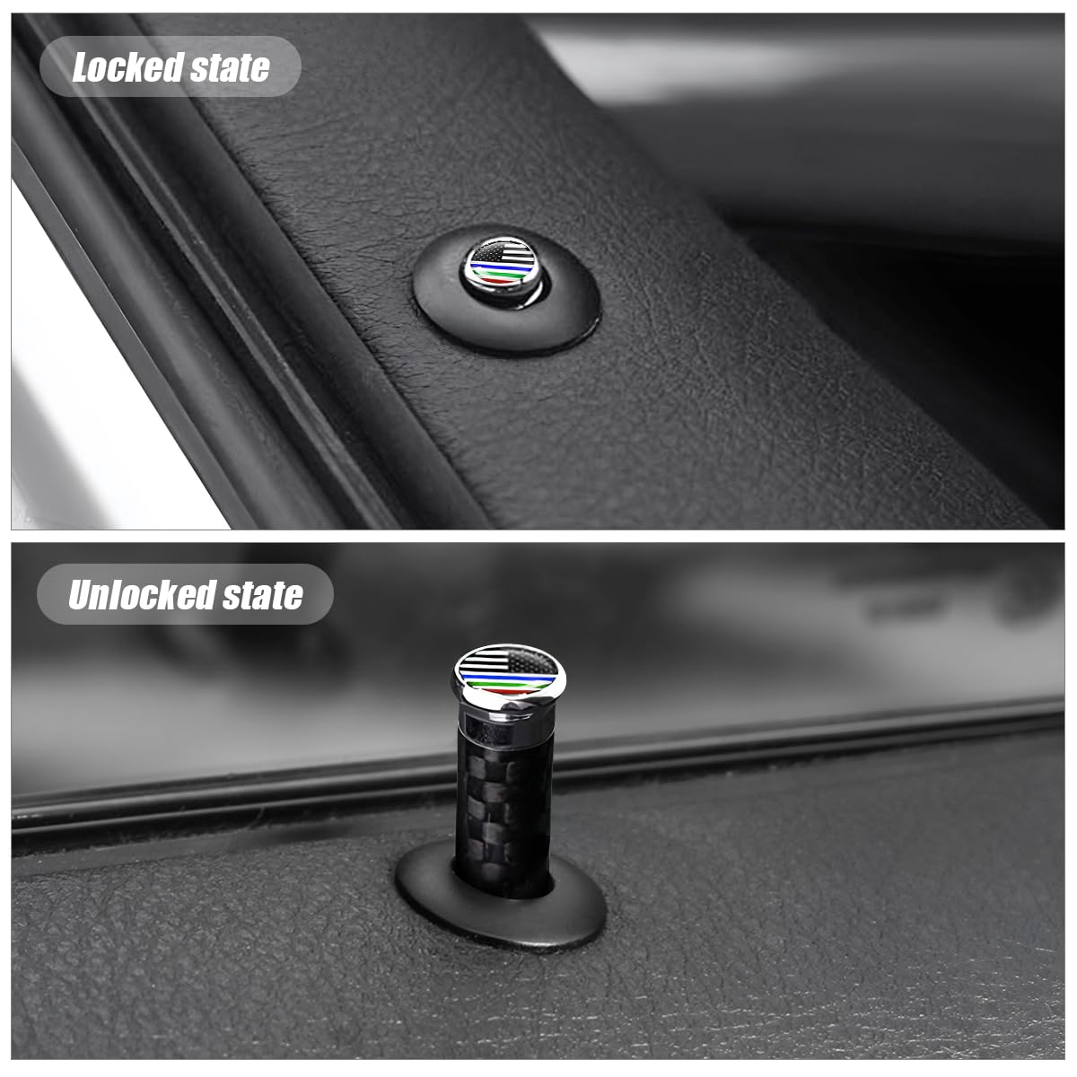 Moly Magnolia 4Pcs Car Door Lock Knobs, American Flag Carbon Fiber Door Lock Pin Cover, Decorative Modification Door Lock Bolt P