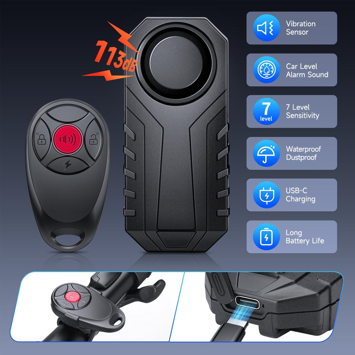 Onvian Bike Alarm Wireless Vibration Motion Sensor, Rechargeable Antitheft Bike Alarm, Ip65 Waterproof Motorcycle Alarm With Remote, Bike Accessories, For Ebikes Bike Scooter Car